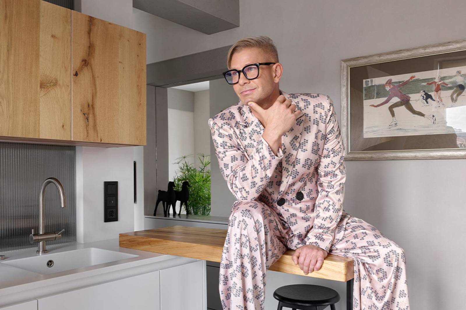 Изначально на месте кухни находилась ванная комната, но дизайнер уговорила Митю Фомина сделать перепланировку и разместить здесь именно кухню. Теперь артист каждое утро наслаждается великолепным видом из окна на центр Москвы.