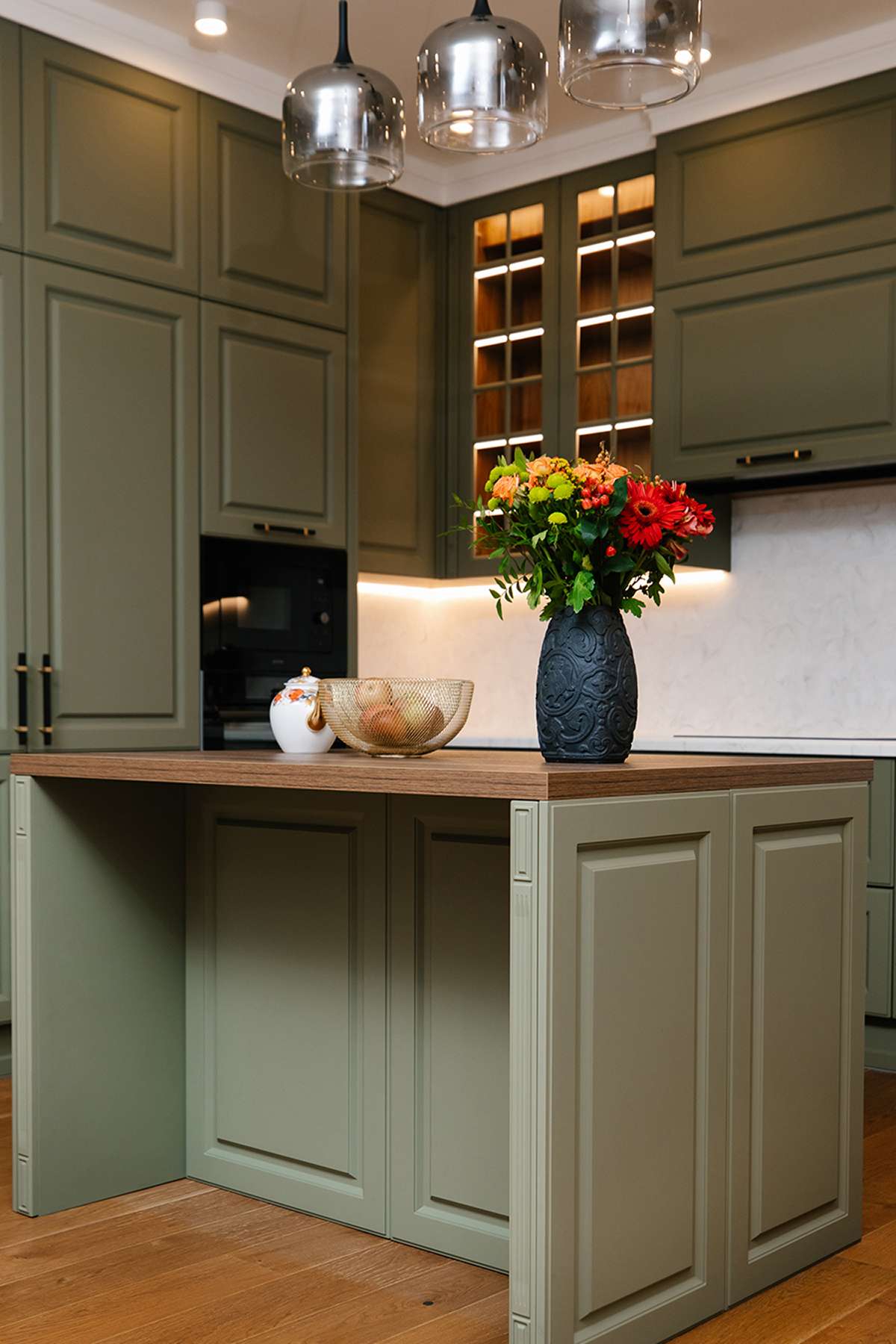 Остановилась на модели Nicolle в эмали роскошного цвета «зеленая агава». Суперматовое покрытие soft-touch делает фасады тактильно приятными и удивительно мягкими на ощупь, будто бархатистыми.