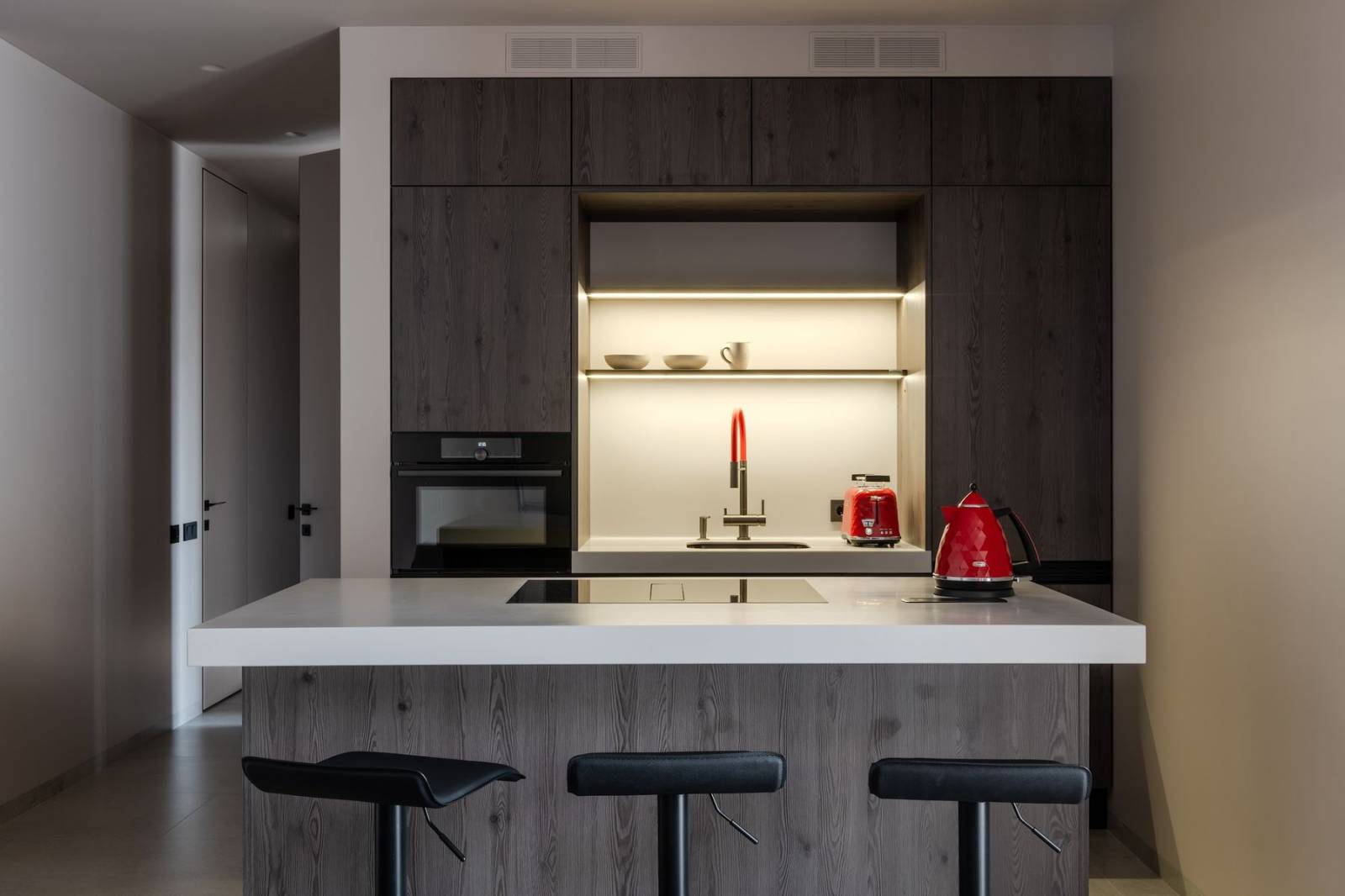 - Установите встроенные доводчики на верхние фасады, чтобы двери закрывались плавно.