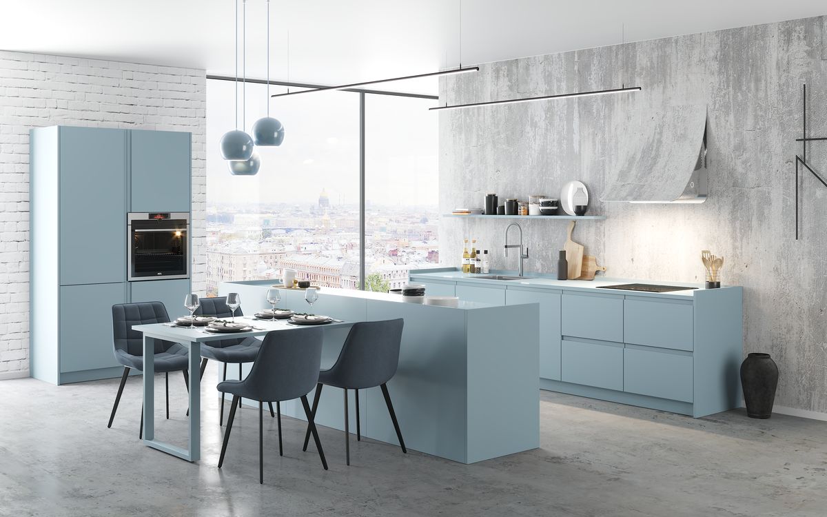 Радикальный минимализм новой модели выражается не только в простых прямых фасадах. Дизайнеры «Марии» отсекли все лишнее, они сделали кухню с простыми геометричными формами и спокойной пастельной гаммой, намеренно отказались от ручек, чтобы расширить возможности для проектирования.