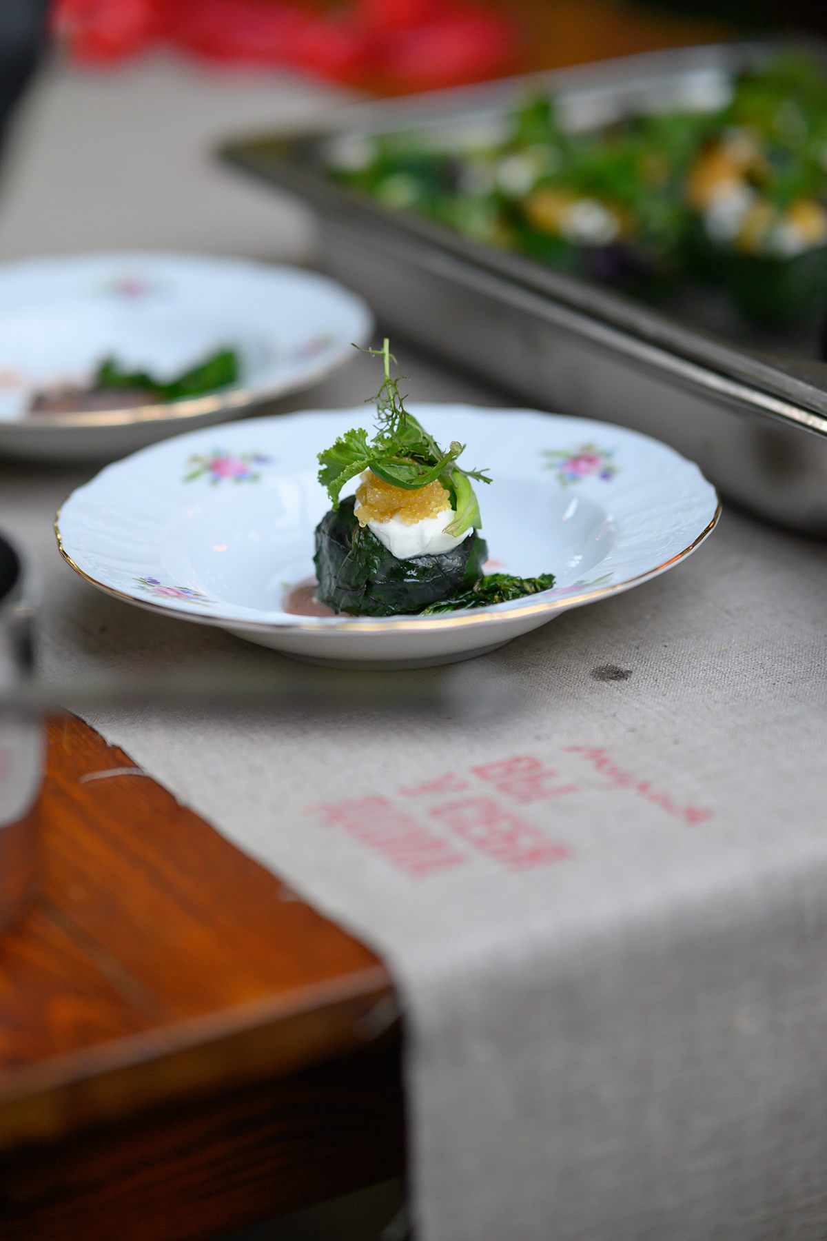 Самый известный в мире российский шеф-повар представил гостям меню: пирожки с черемшой и грибным чаем, карпаччо из белых грибов с пармезаном, капустный пирог с тремя видами икры, голубчик из кролика в свекольных листьях, борщ на бургундском вине, брусничный торт и бон-бон с рябиной. Вдохновением для его составления послужило наследие выдающегося ученого-агронома Николая Ракицкого и традиционная русская кулинария.