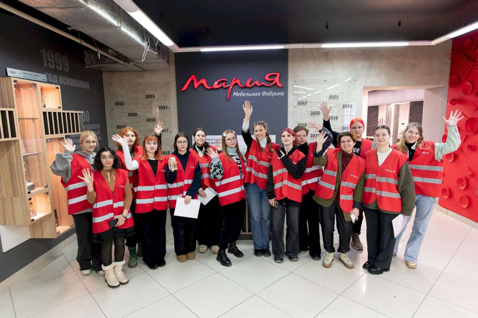 В рамках визита студенты получили возможность пообщаться с представителем фабрики. Руководитель группы дизайнеров дизайн-бюро Компании «Мария» Евгения Гайворонская рассказала, как рождается идея, как продумываются и детально прорабатываются формы, линии, эргономика и функциональность мебели, поделилась знаниями о том, как создается базовый макет изделия, подбираются материалы, фурнитура и комплектующие для проекта.