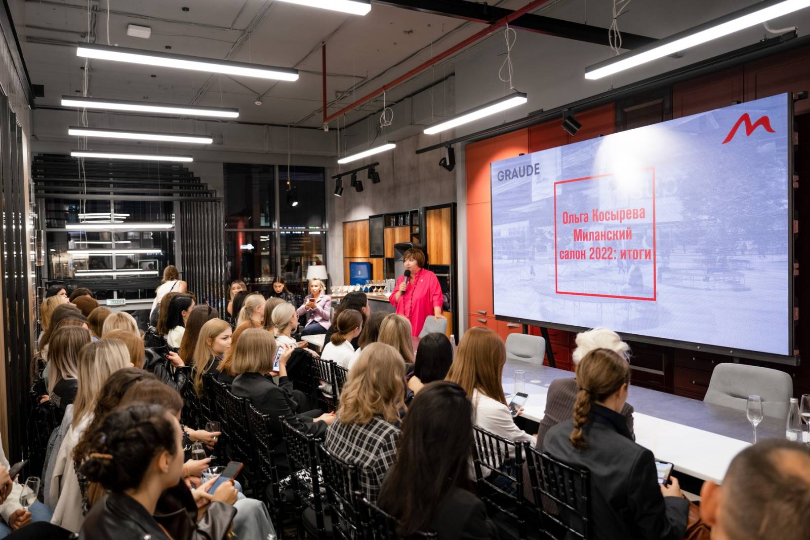 Ольга Косырева, без преувеличения, самый известный и авторитетный в стране дизайн-критик, тренд-аналитик, популярный преподаватель и лектор. На лекции в студии «Марии» она рассказала о Salone del Mobile – 2022 – главном событии в мировом дизайне, на котором она побывала. Дизайнеры Краснодара увидели более трехсот фотографий лучших инсталляций и стендов выставочной и вневыставочной программы, из которых можно почерпнуть идеи и вдохновение для своих проектов. А также узнали о главных цветовых и стилевых трендах года и работах мировых дизайнеров и брендов, которые идут «впереди планеты всей».