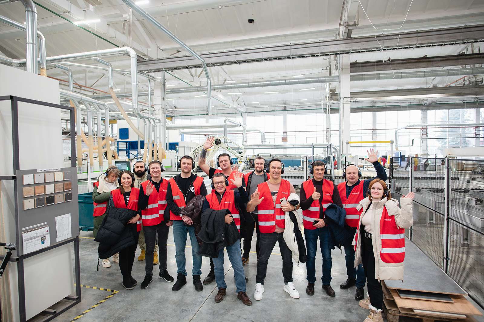 Затем гости направились на основную производственную территорию, где смогли увидеть полный цикл производства мебели – от распила листов материала до сборки и упаковки готовых изделий. В шоуруме осмотрели самые актуальные модели и уникальные кухни-концепты, изготовленные в единственном экземпляре, дизайн-лабораторию, на стенах которой размещены 1216 фасадов, техническую кухню и квартиру, полностью обставленную мебелью и аксессуарами из коллекции «Марии».