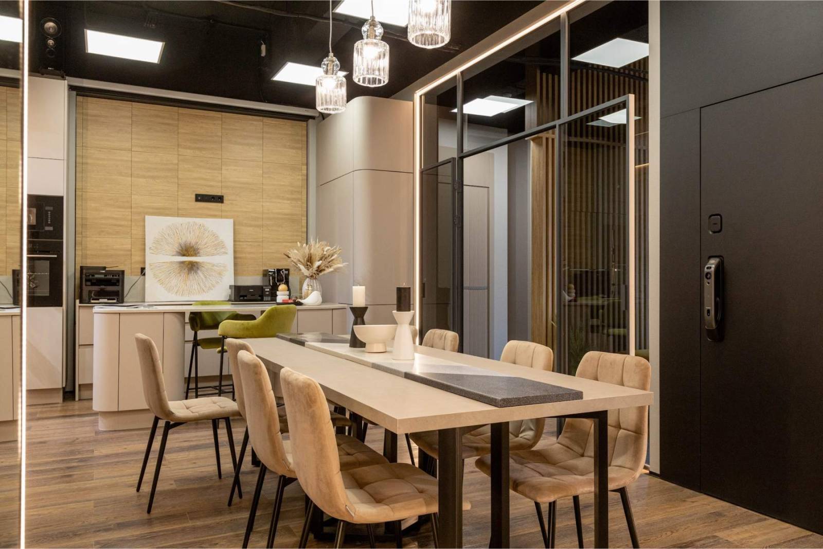 Посетители шоурума могут ознакомиться с рядом ключевых тенденций в мировом мебельном дизайне. Среди них скругленные фасады мебели, скрытое пространство, модульная мягкая мебель с округлыми формами. Все это отвечает современным запросам на функциональность и эстетическую легкость в интерьере.