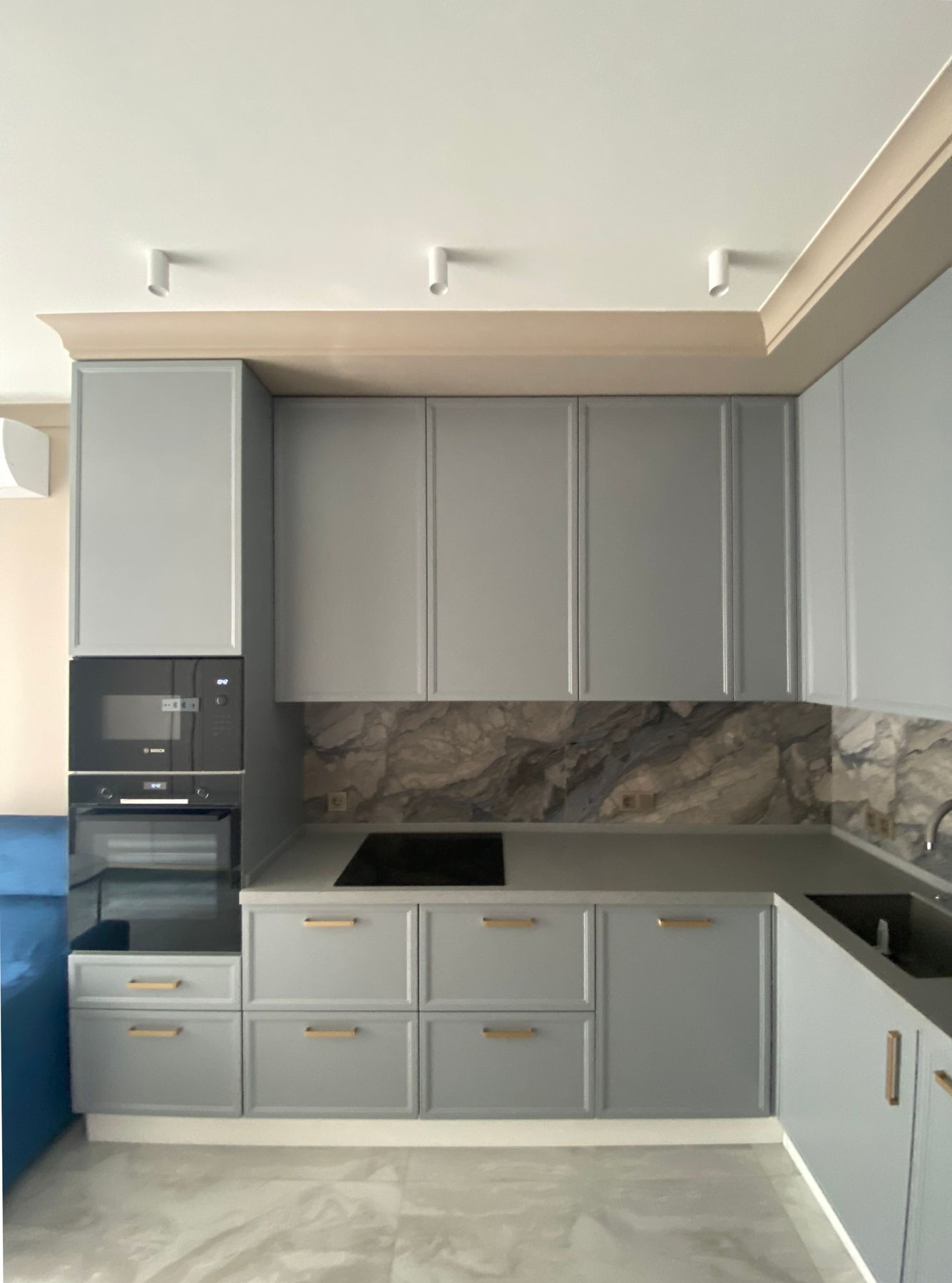 О проектеОписаниеГлавной сложностью в этом проекте кухни стал готовый фартук, который не подходил под стандартные размеры мебели. Нам предстояло изготовить индивидуальный гарнитур с ювелирной точностью, где каждый миллиметр имел значение. Мы благодарны клиенту Ирине за доверие и готовность прислушиваться к нашим рекомендациям, что в итоге привело к безупречному результату.