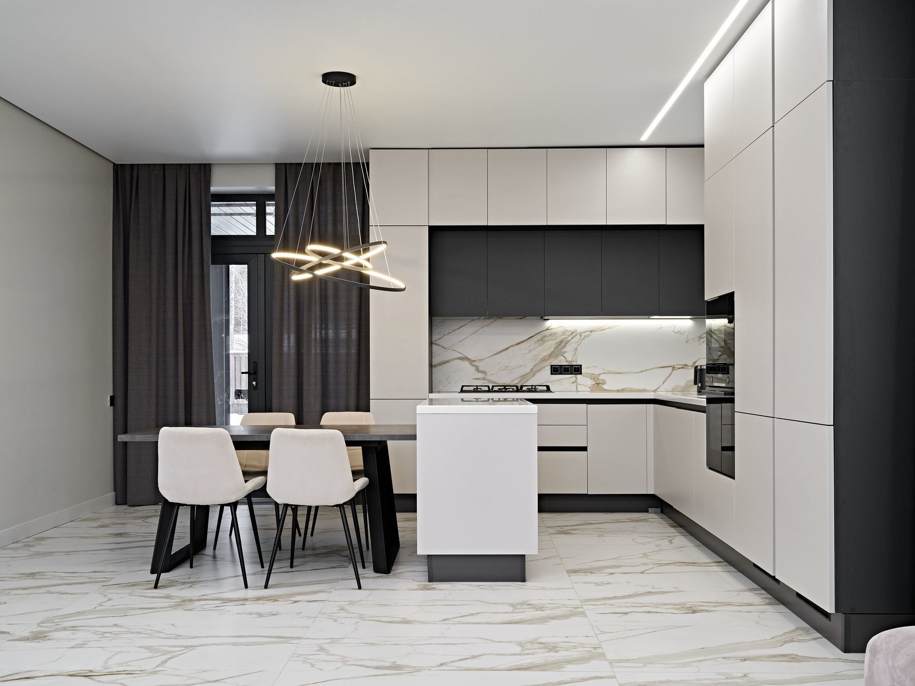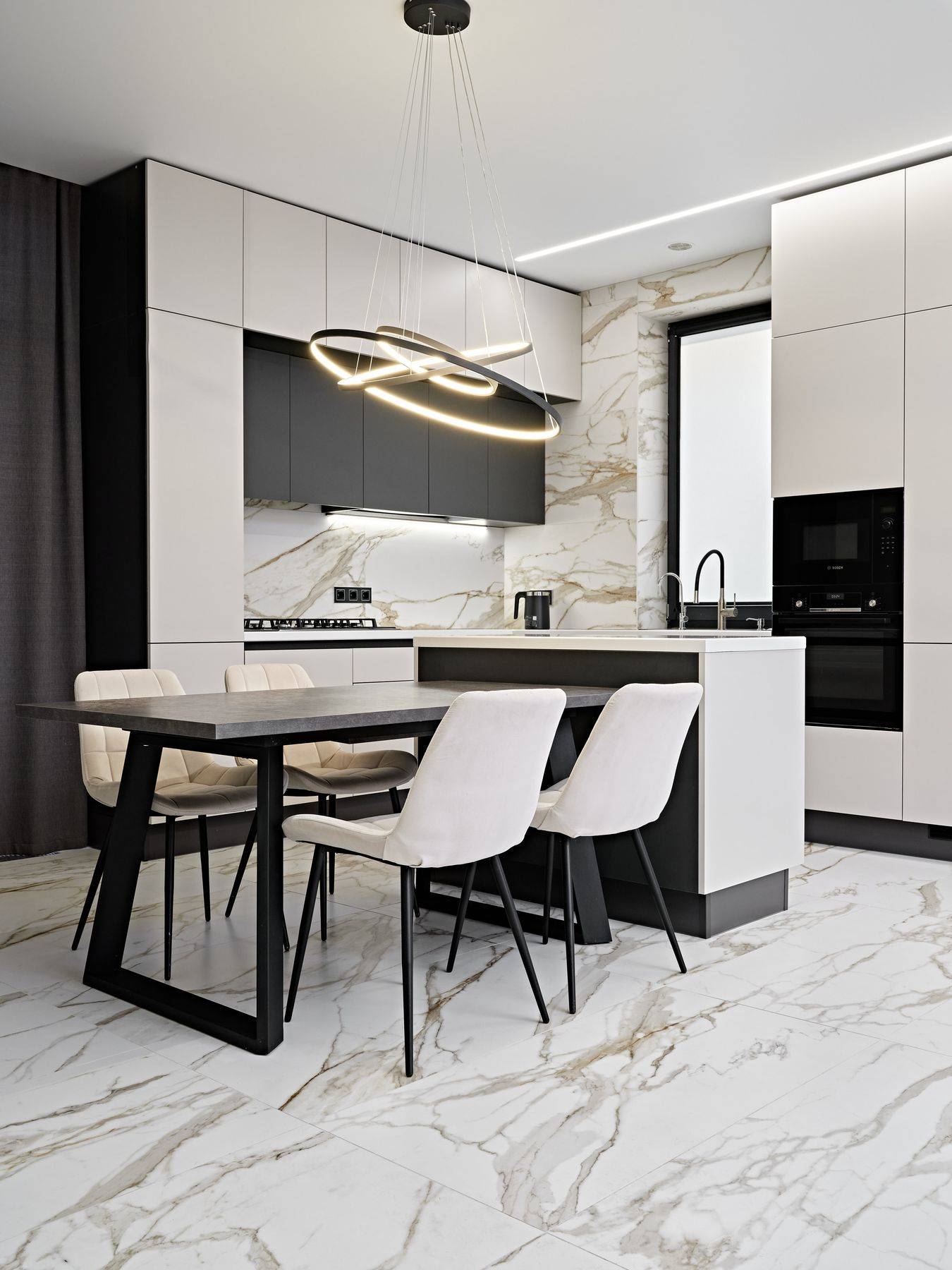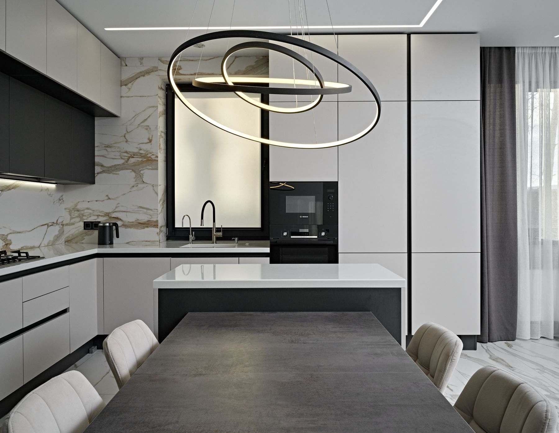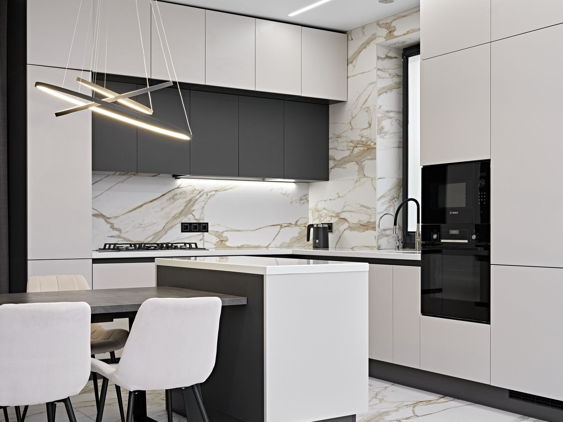 1. Эргономичный остров. Мы не просто добавили остров, а создали дополнительную просторную рабочую поверхность. Теперь у хозяйки есть удобная зона для готовки и сервировки.
