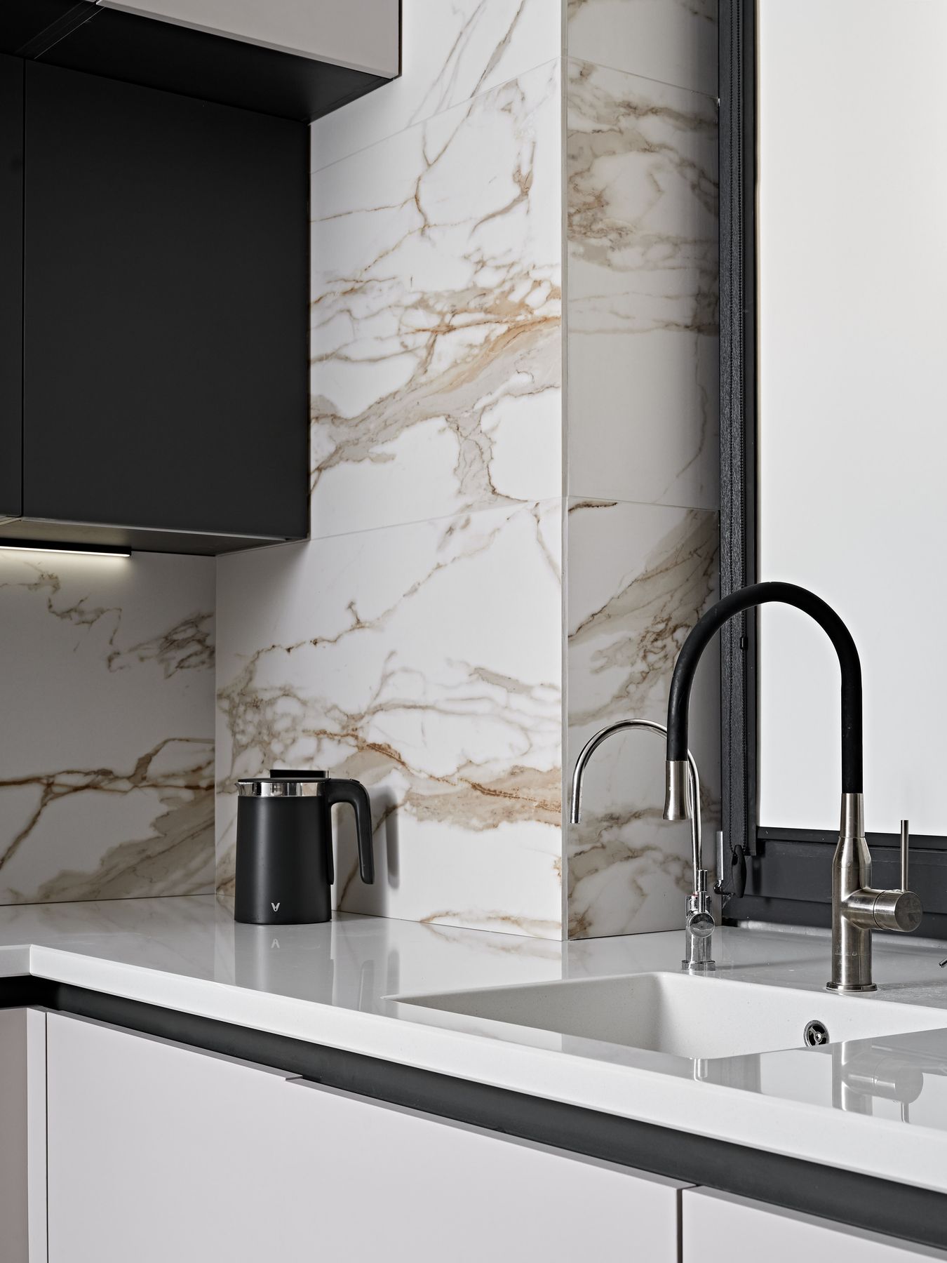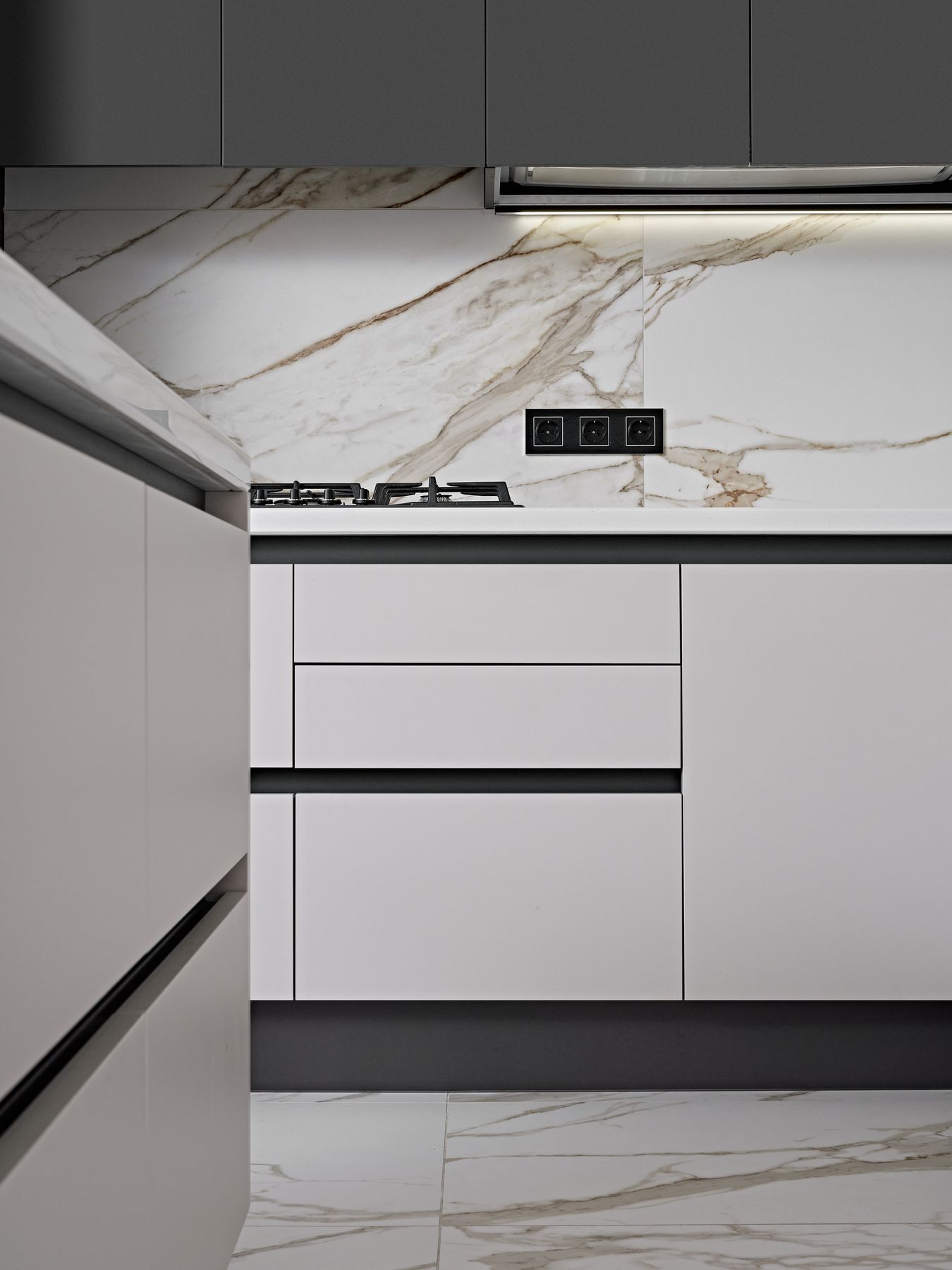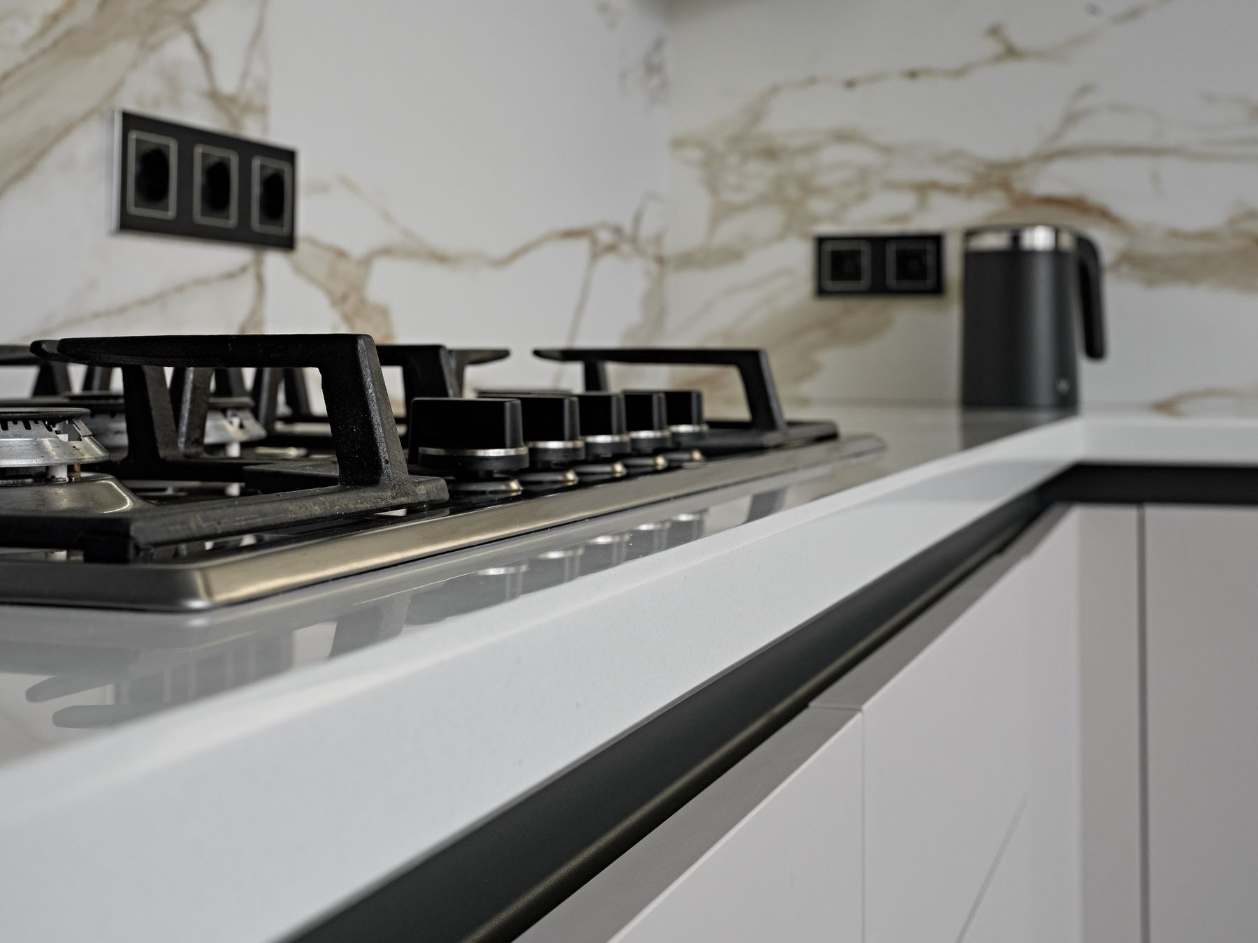 3. Идеальный порядок. Все коммуникации, включая газовый вентиль и трубу, были аккуратно скрыты в конструкции острова. Это решение — квинтэссенция минимализма: никаких лишних деталей, только чистая функциональность. -