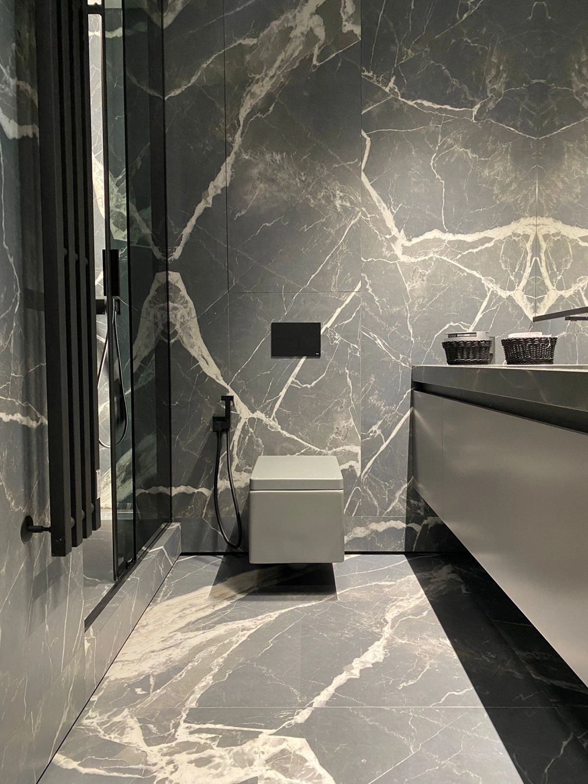 О проектеОписаниеСовременная ванная с выдвижными ящиками хорошо сочетается с широкой раковиной из искусственного камня. Дизайн ванной комнаты выполнен в стиле минимализм с яркими цветовыми акцентами. А модель Jazz идеально подходит под общую концепцию дизайна квартиры.