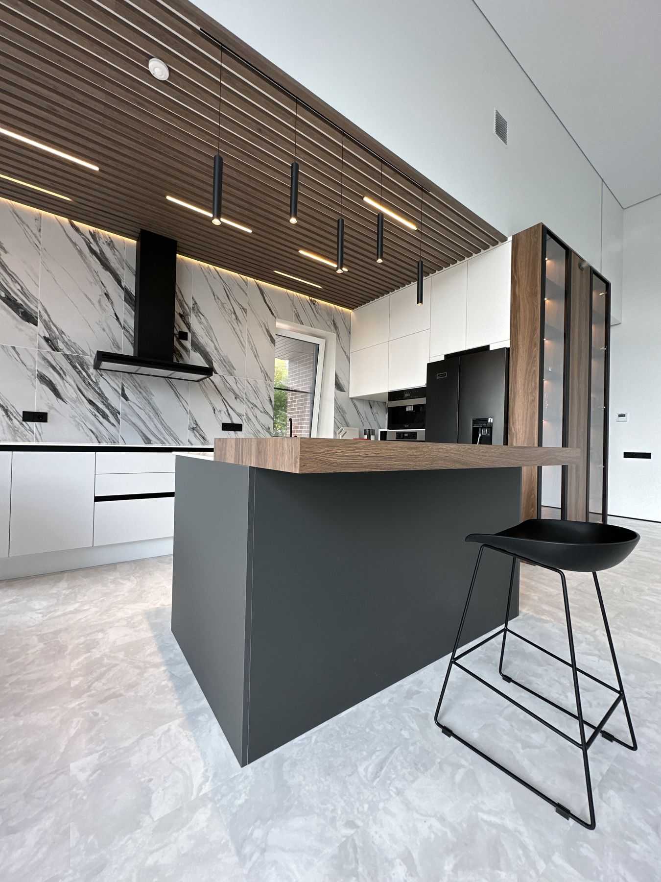 Для создания целостного пространства мы использовали ультраматовые фасады в разных моделях, подбирая оптимальное решение для каждого помещения: