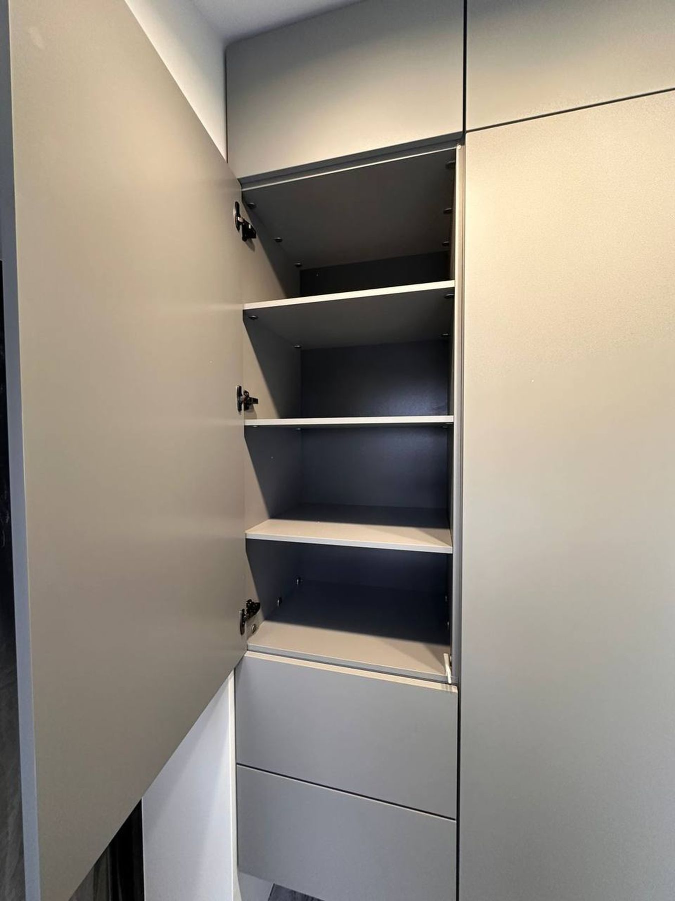 О проектеОписаниеШкаф "Integrato" - воплощение современного минимализма и функциональности. Его парящий дизайн создает ощущение легкости и пространства в прихожей. Темно-серый цвет и ультраматовая эмаль придают шкафу стильный и модный вид, соответствующий трендам сезона 2025 года.