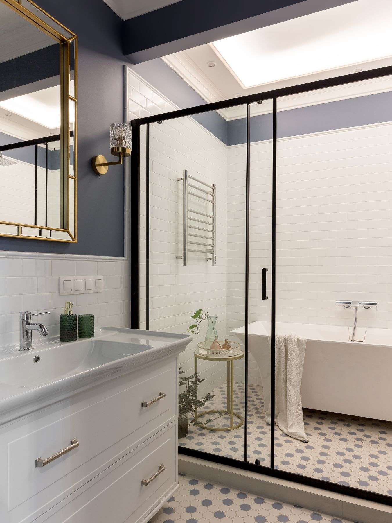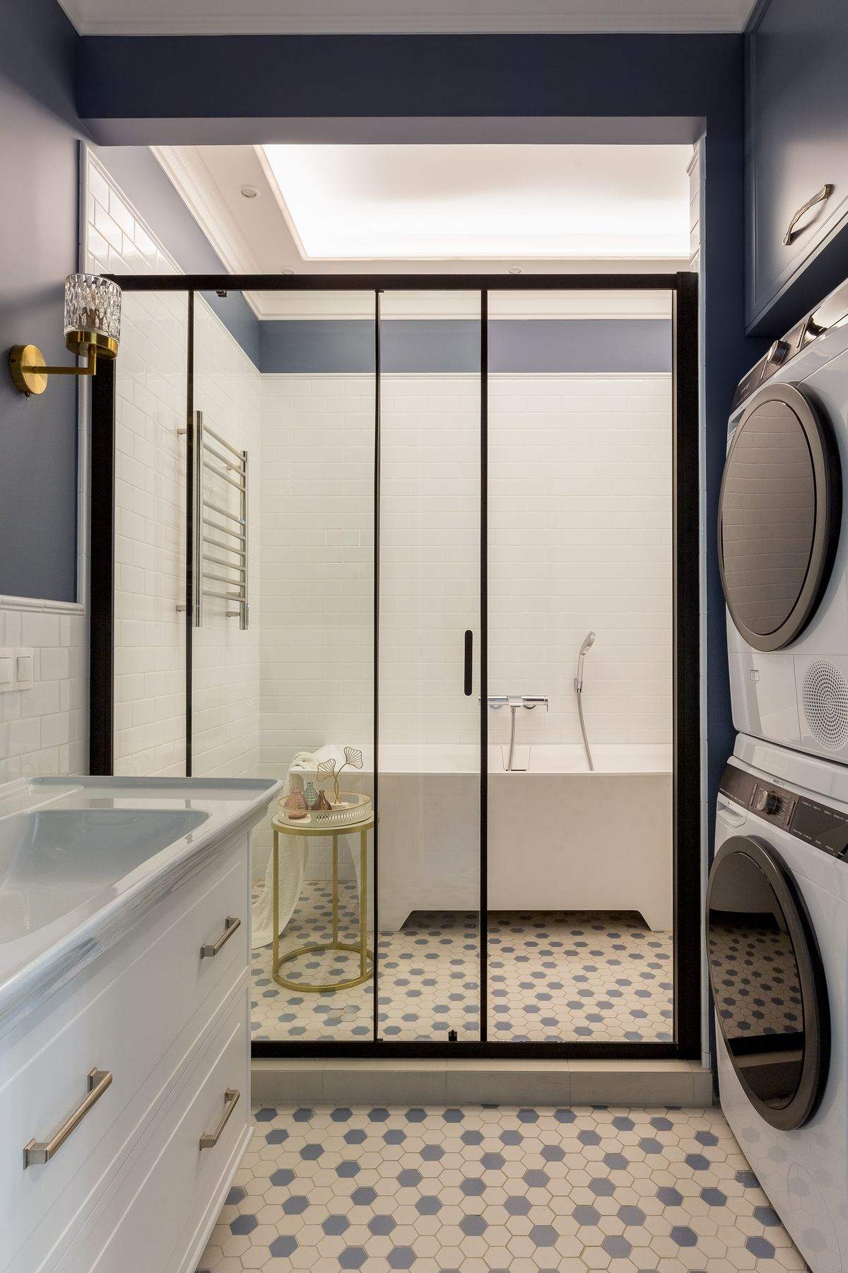 Шкафы в ванной комнате и прихожей сделали встроенными, чтобы они визуально выглядели легче. А еще с такой мебелью легче поддерживать чистоту.