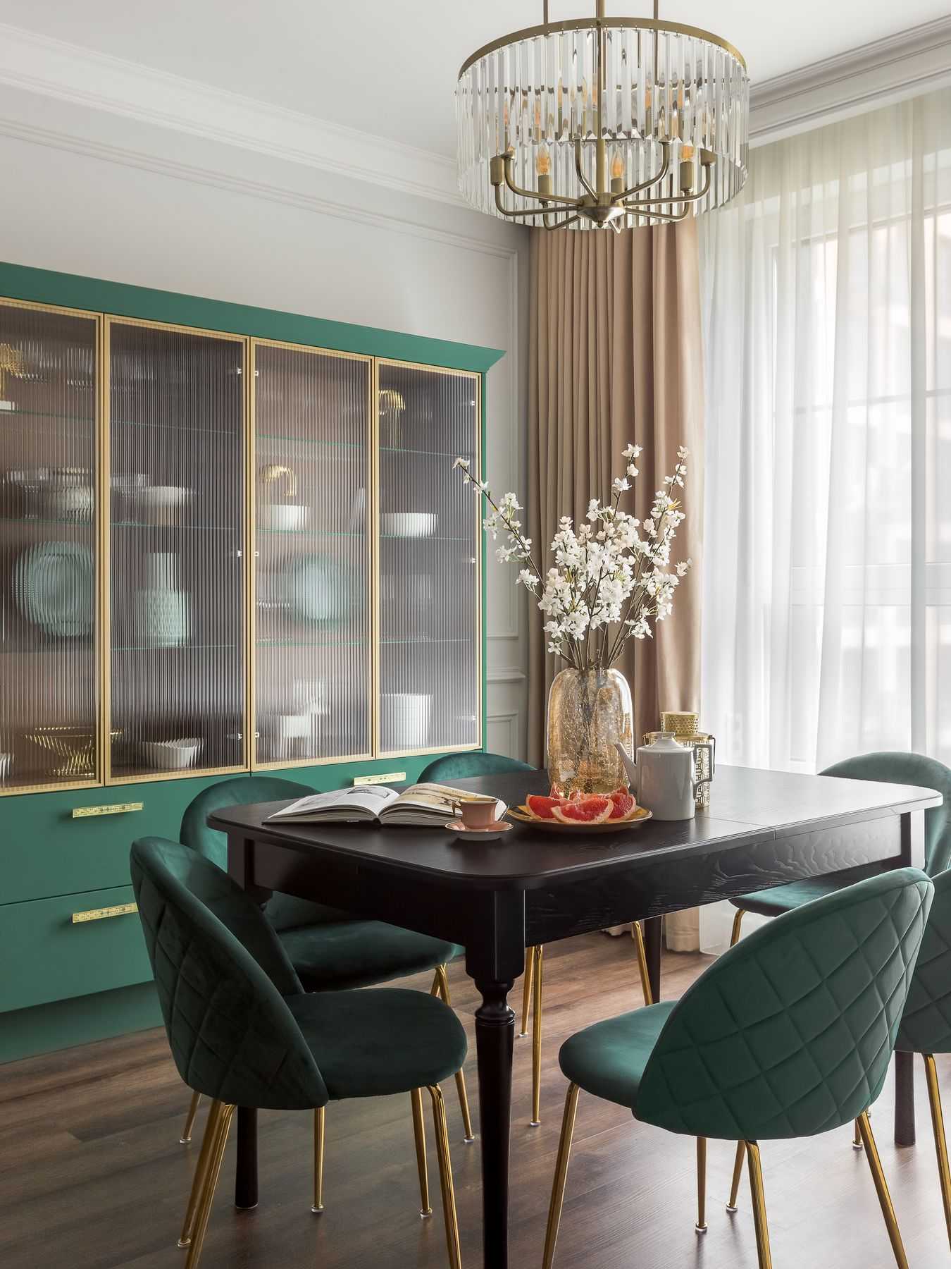 Помимо кухонного гарнитура для столовой зоны в «Марии» заказали элегантный шкаф-витрину со стеклянными фасадами для красивой посуды.