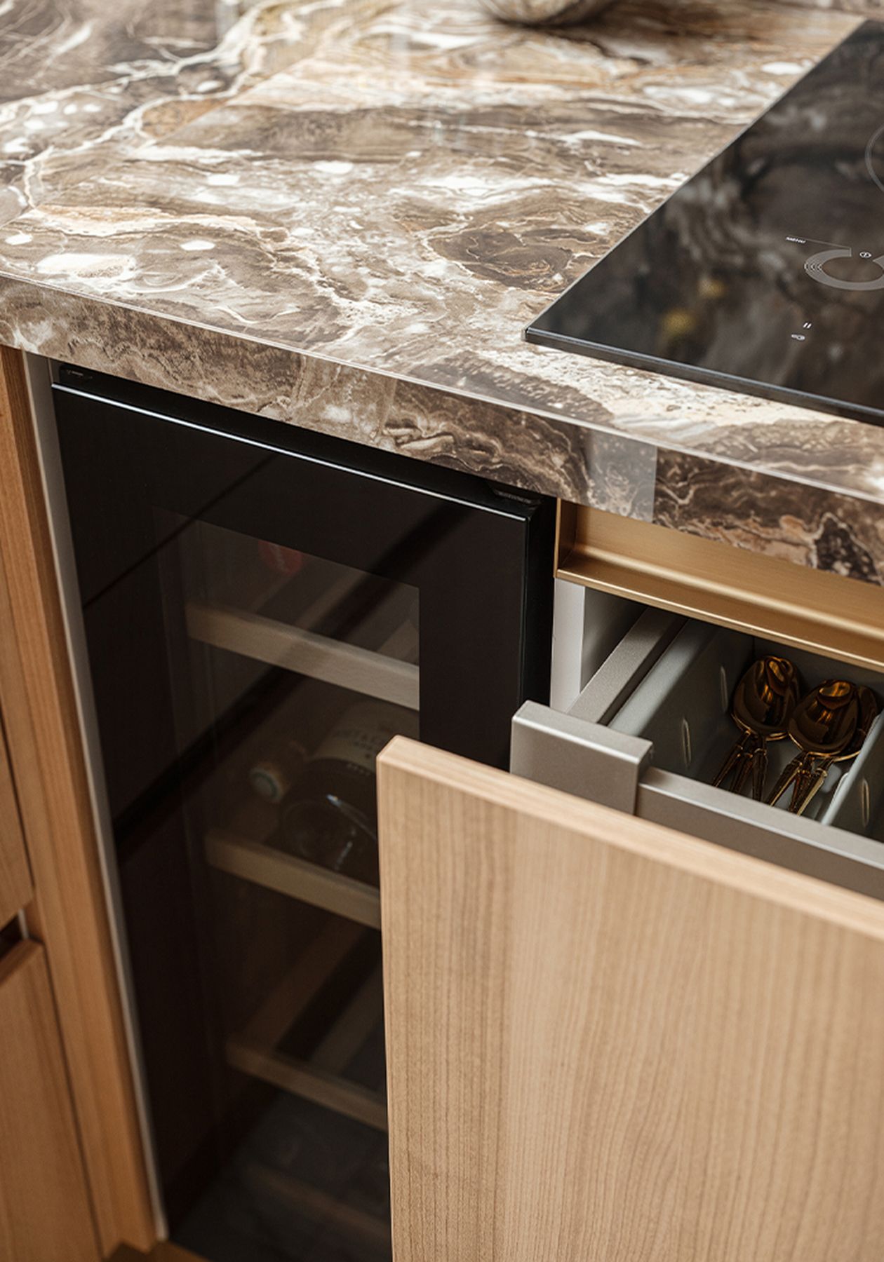 - Фурнитура: Для сохранения чистоты линий использованы интегрированные ручки Air и профиль Gola.