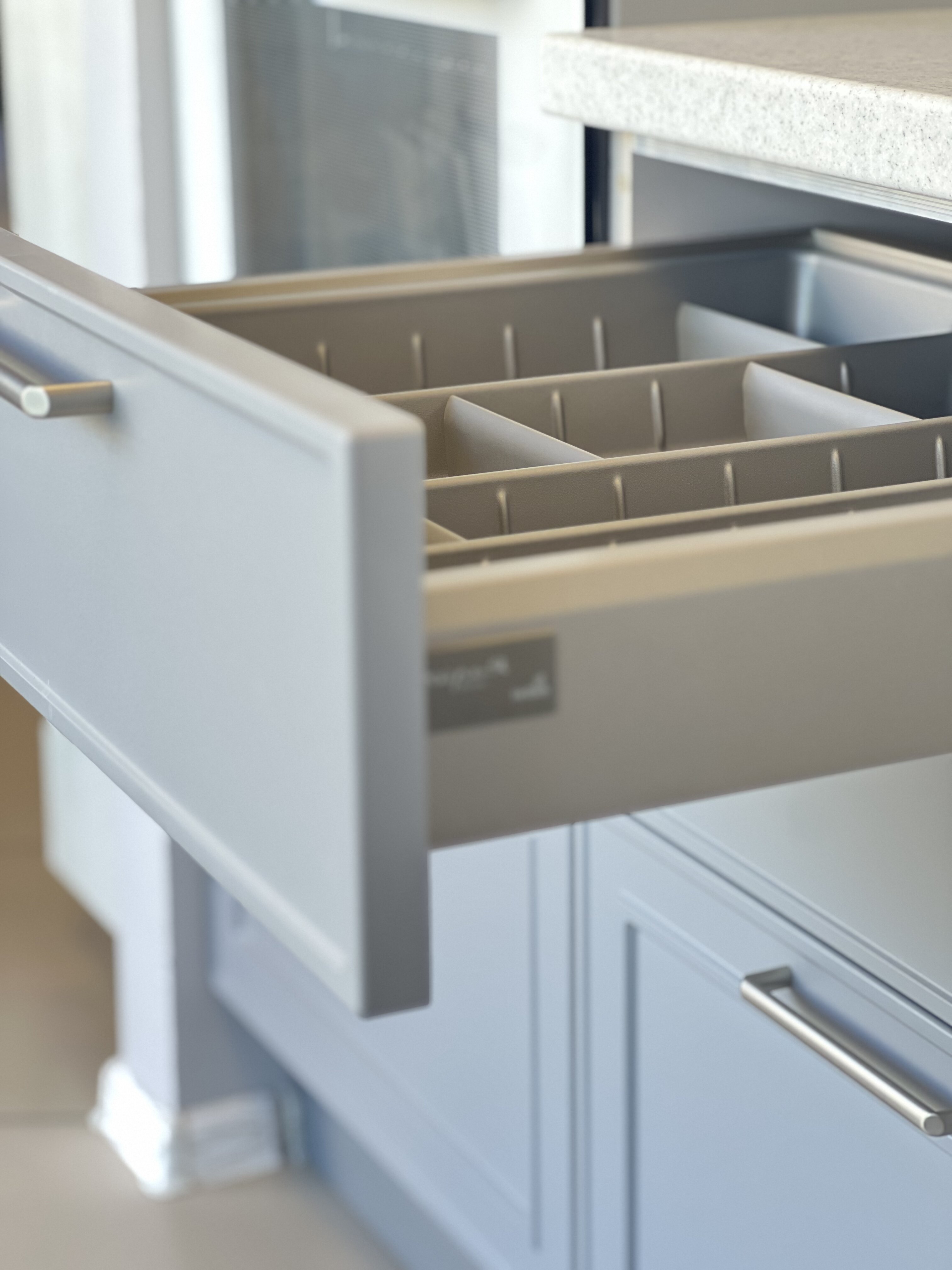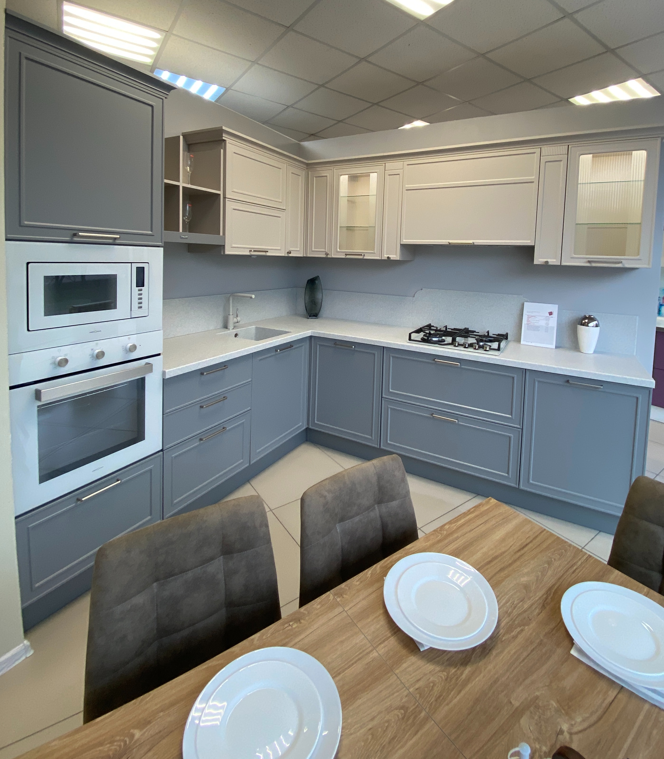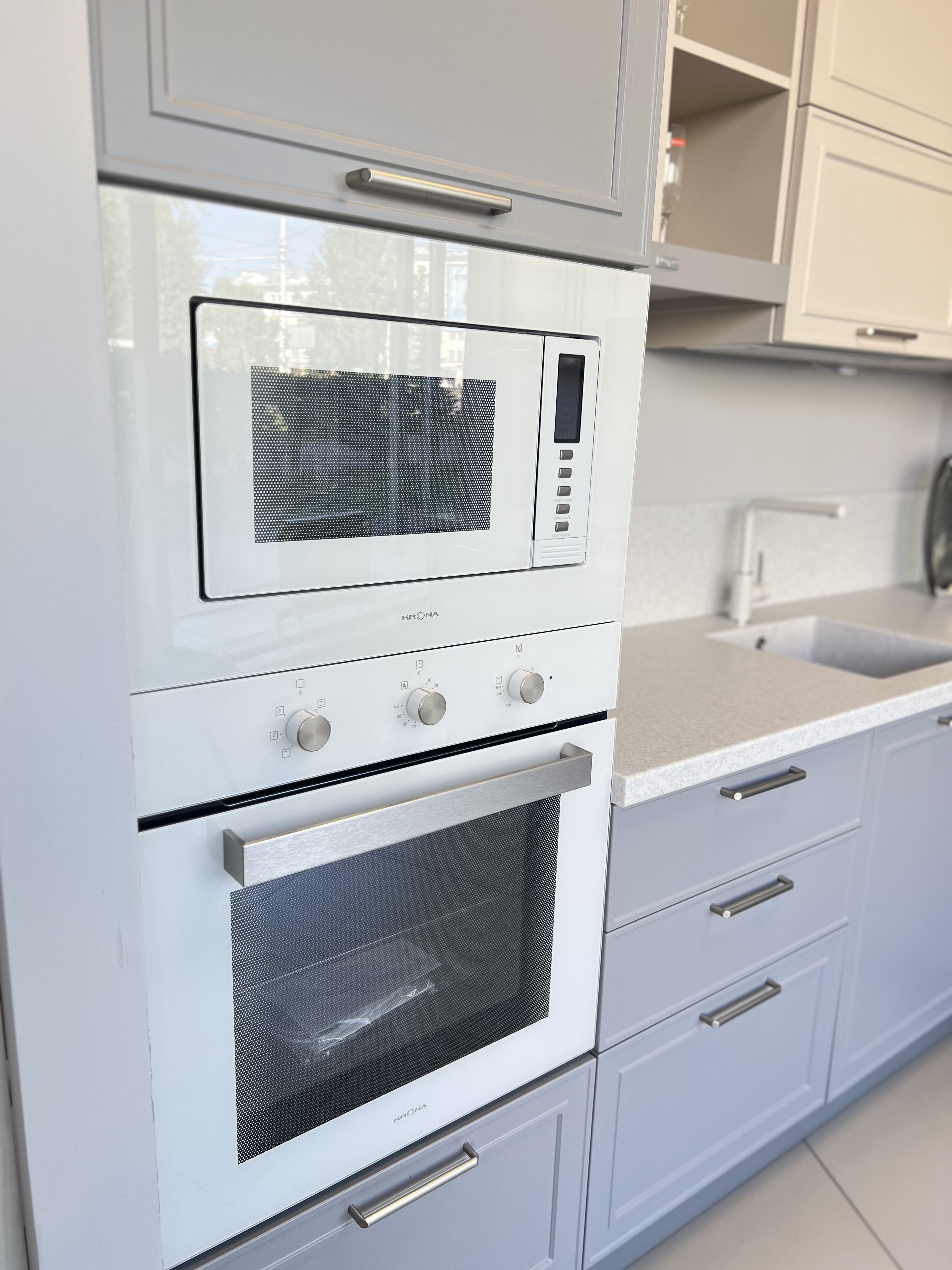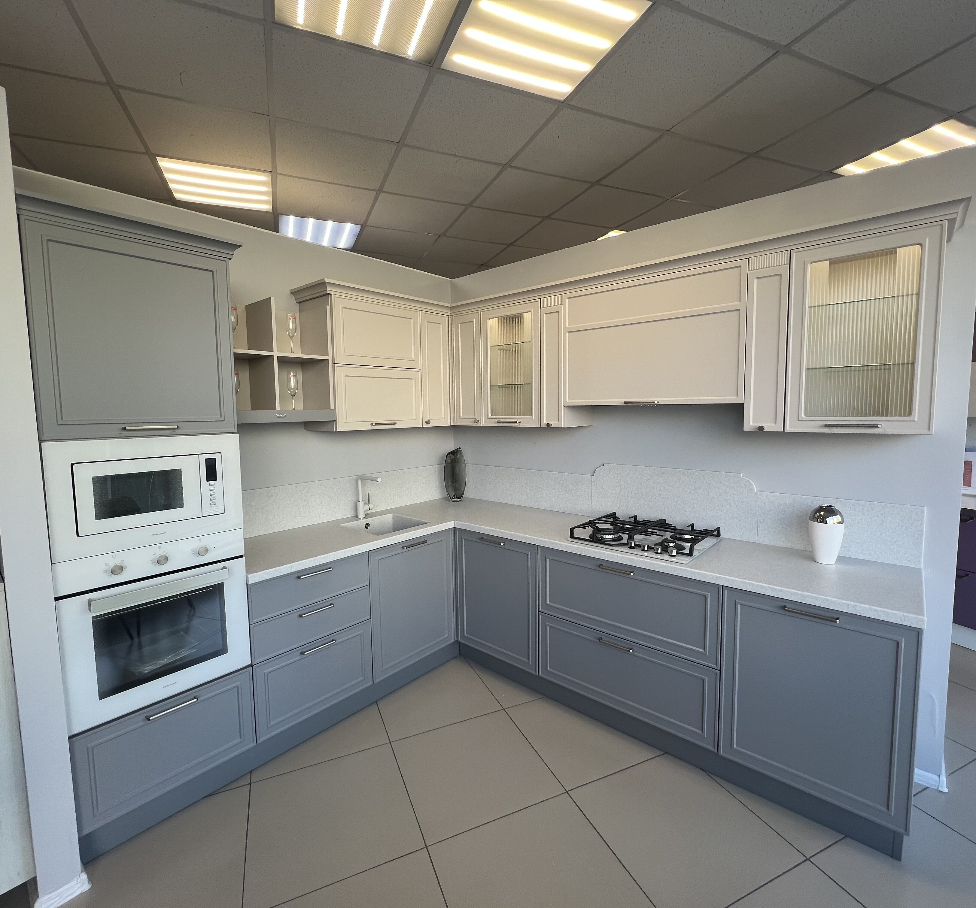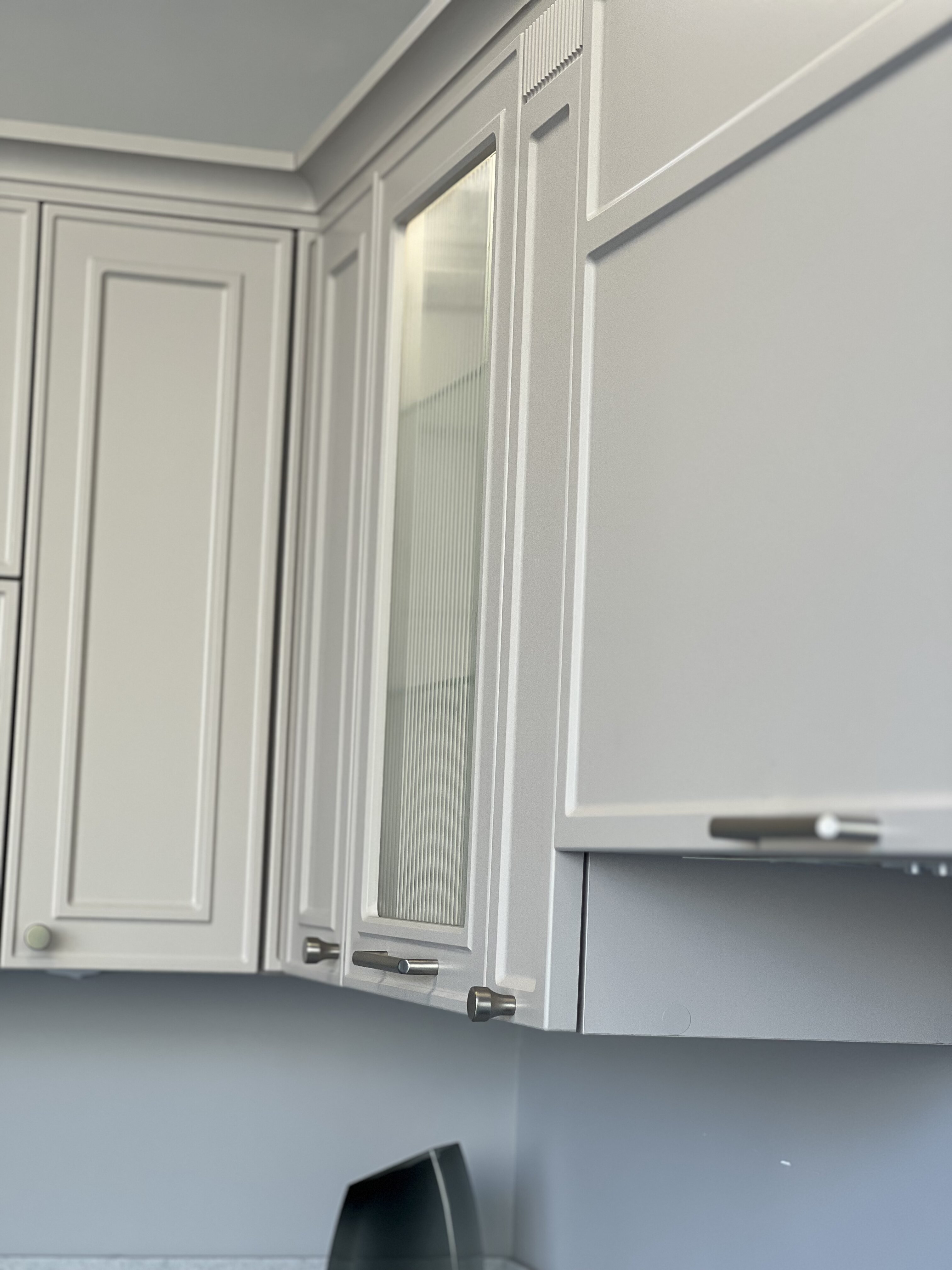 О проектеОписаниеЭлегантное сочетание неоклассического дизайна и современных решений. Модель выполнена в утонченном двухцветном исполнении: верхние фасады в светлом оттенке Кашемир подчёркивают легкость, а нижние — в благородном цвете - Пыльный серый — придают глубину и характер. Встроенная техника, стеклянные витрины, продуманная эргономика и качественная фурнитура делают эту кухню не только эстетичной, но и функциональной. Идеальный выбор для тех, кто ценит уют, практичность и безупречный стиль.