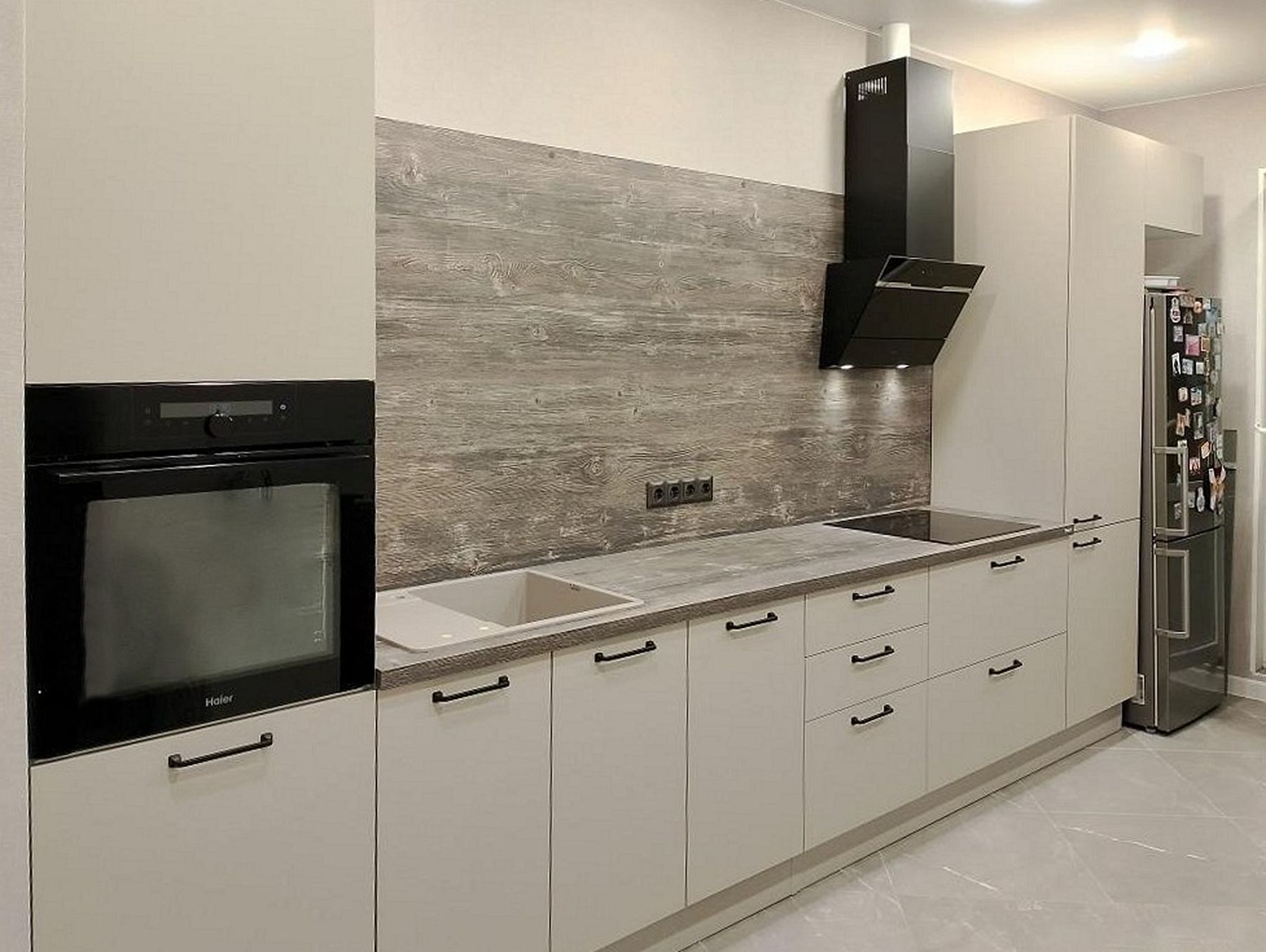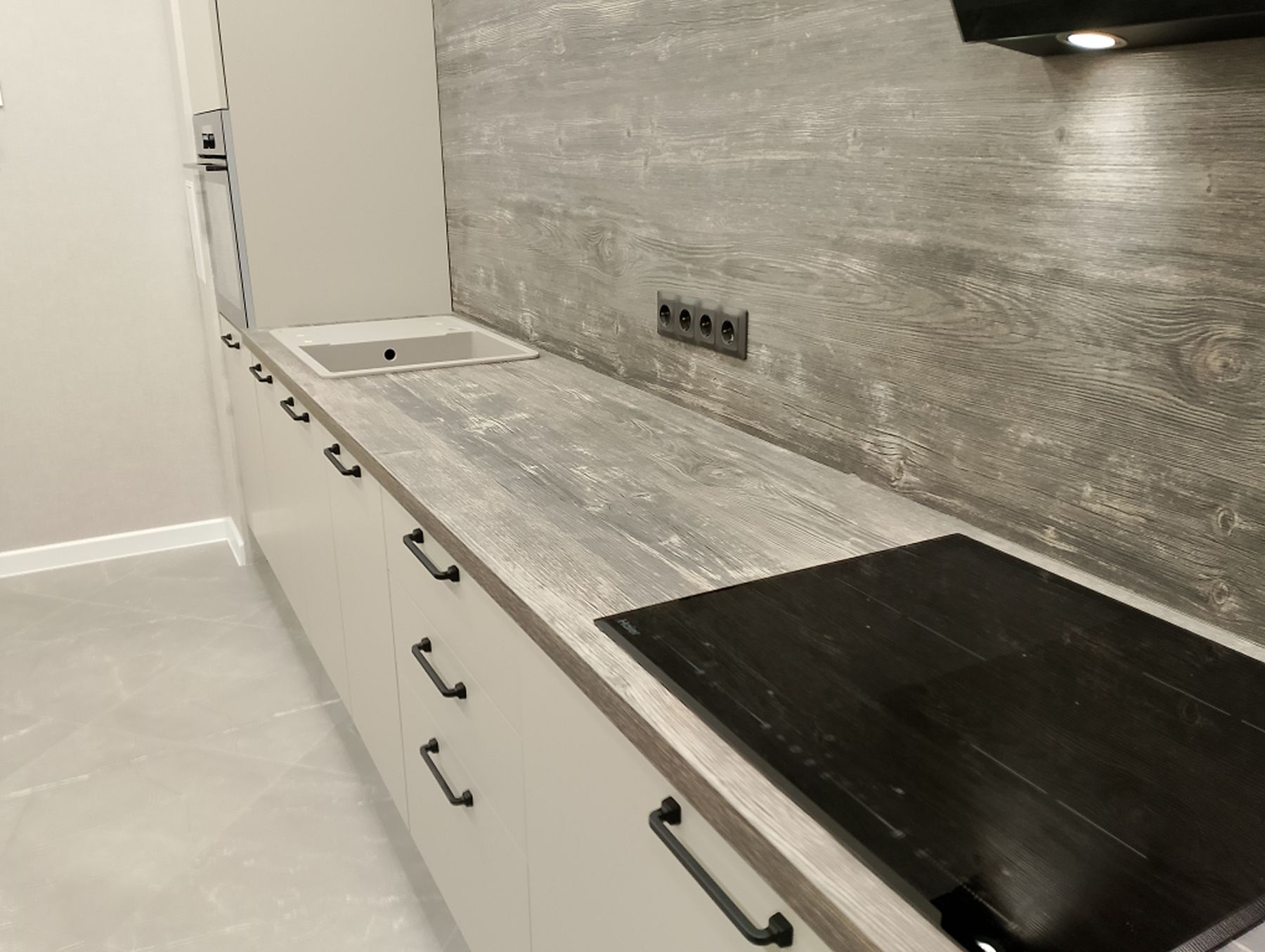 Мы используем материалы с мягкой текстурой, которая создает светлые оттенки и визуально расширяет пространство. Такой дизайн превращает стандартный кухонный гарнитур или шкаф-купе в элемент уютной атмосферы. Натуральность фактуры и цвета помогает отдохнуть от городской суеты, не жертвуя эстетикой и функциональностью.