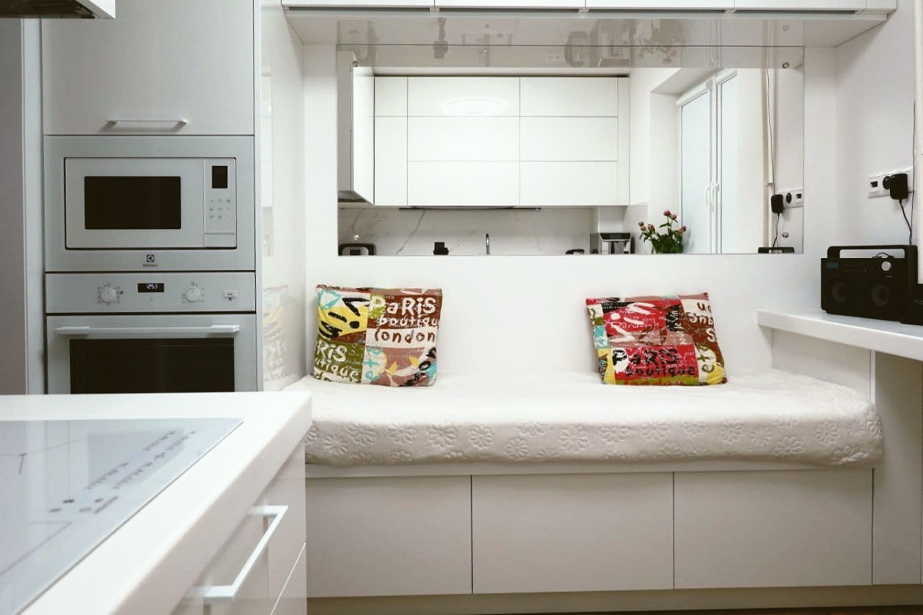 О проектеОписаниеБелая кухня, и ничего лишнего! Максимальное количество механизмов позволило обыграть маленькое пространство кухни и сделать ее супер-удобной! Белый цвет никогда не надоест и всегда остается в тренде.