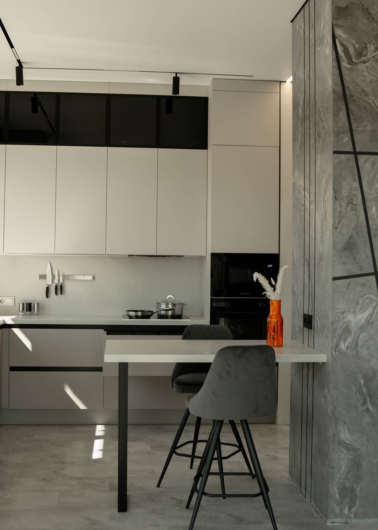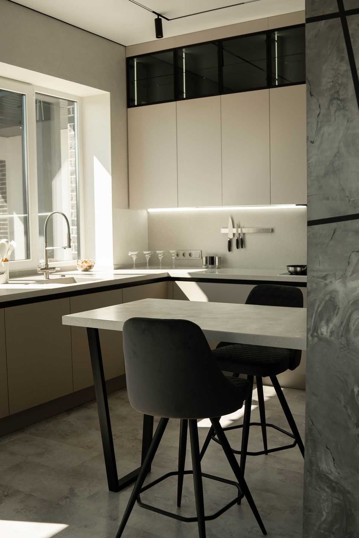 О проектеОписаниеЭтот проект разработан для молодого клиента, чётко представлявшего, как должно выглядеть кухонное пространство. Интерьер получился минималистичным и функциональным.