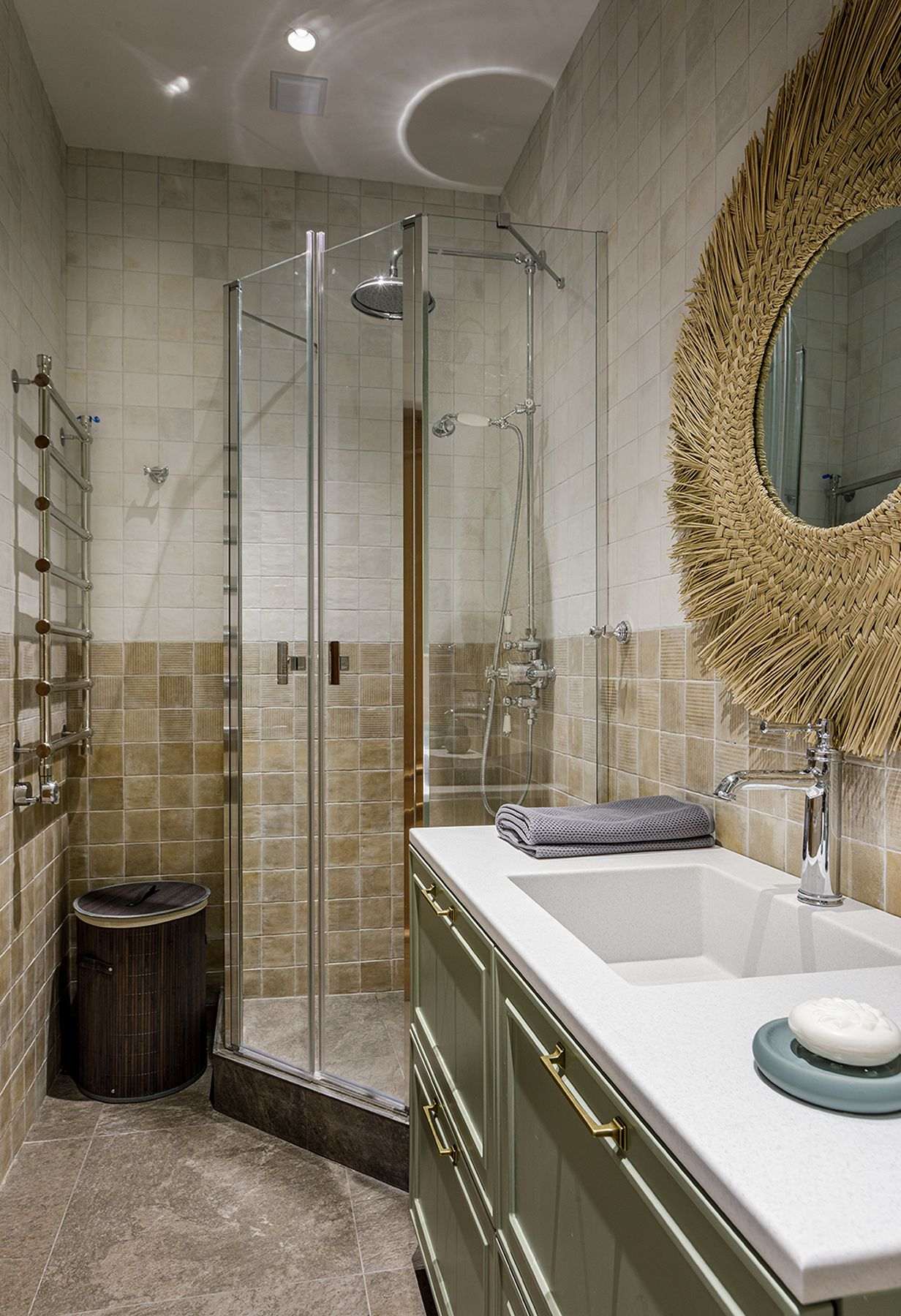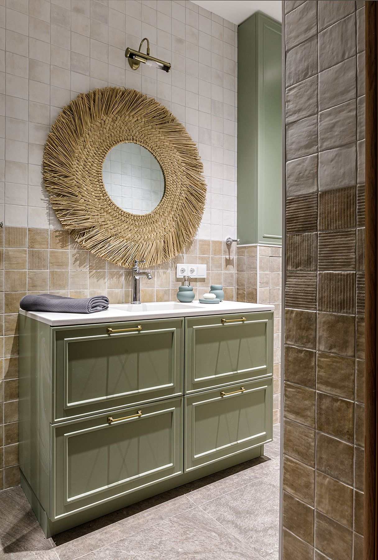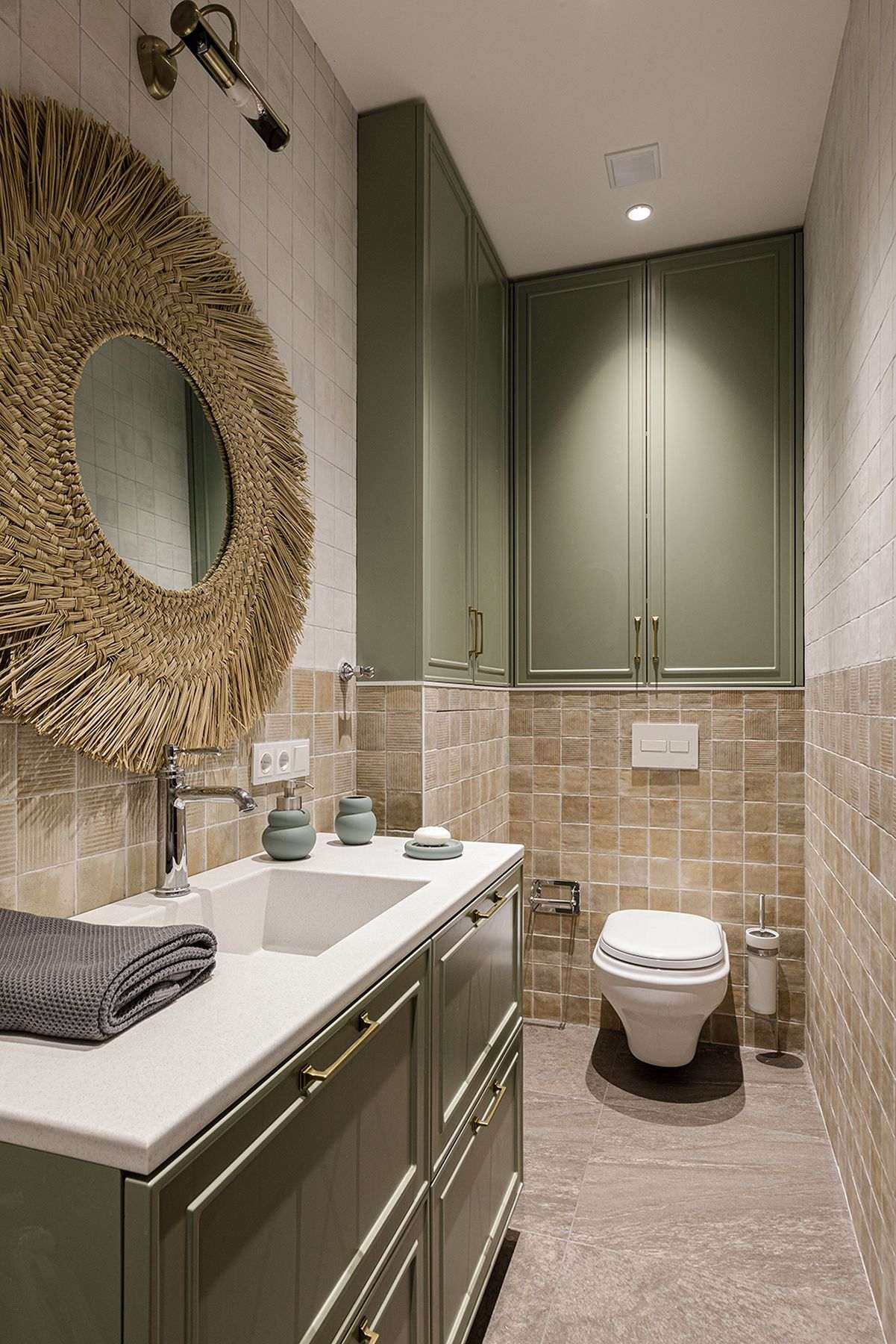 Интерьер ванной комнаты также был преобразован: здесь появилась тумба с раковиной из искусственного камня и вместительные шкафчики для хранения вещей. Фасады модели Trento окрашены в освежающий жемчужно-эвкалиптовый цвет и идеально сочетаются с общим стилем дома.