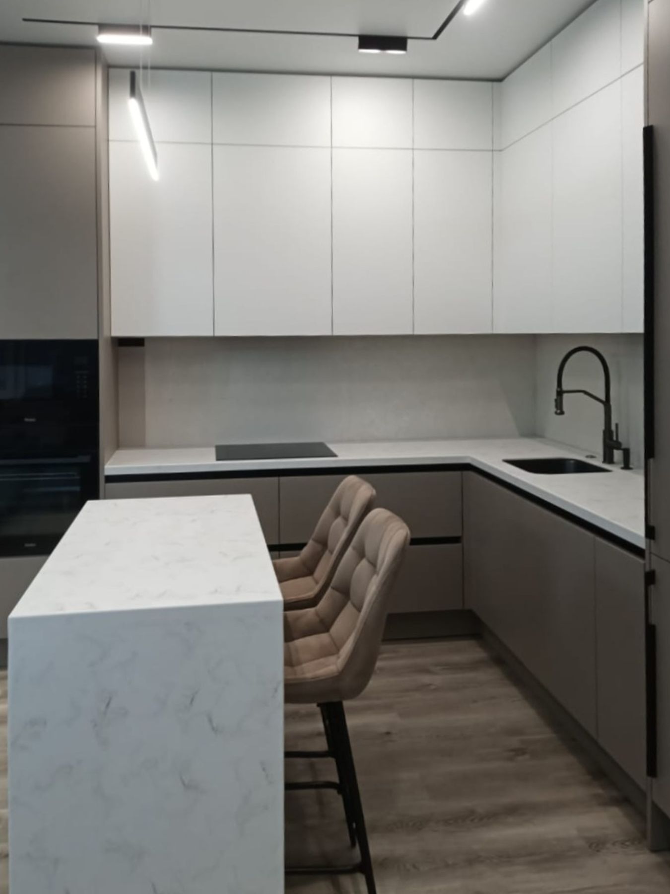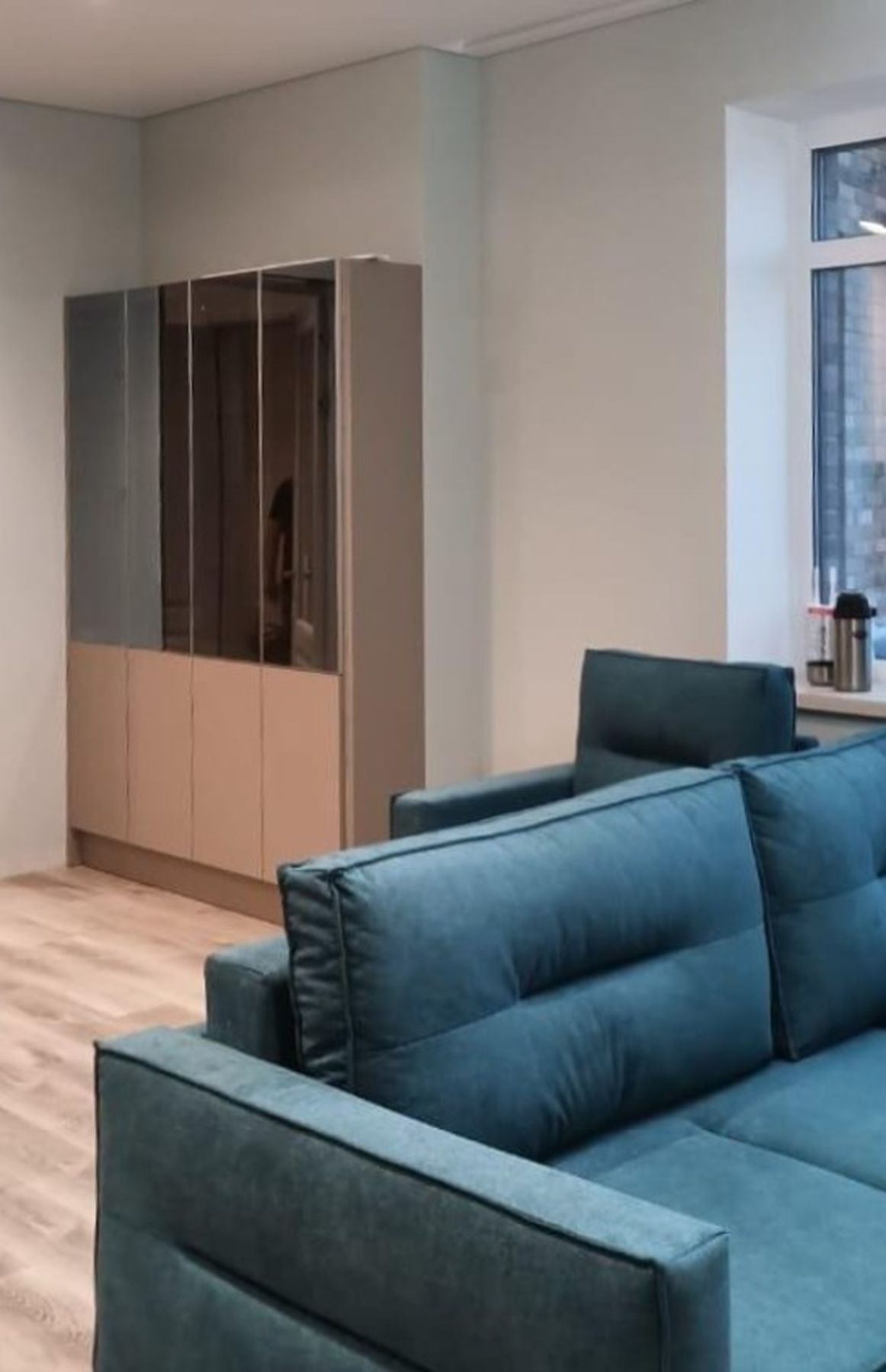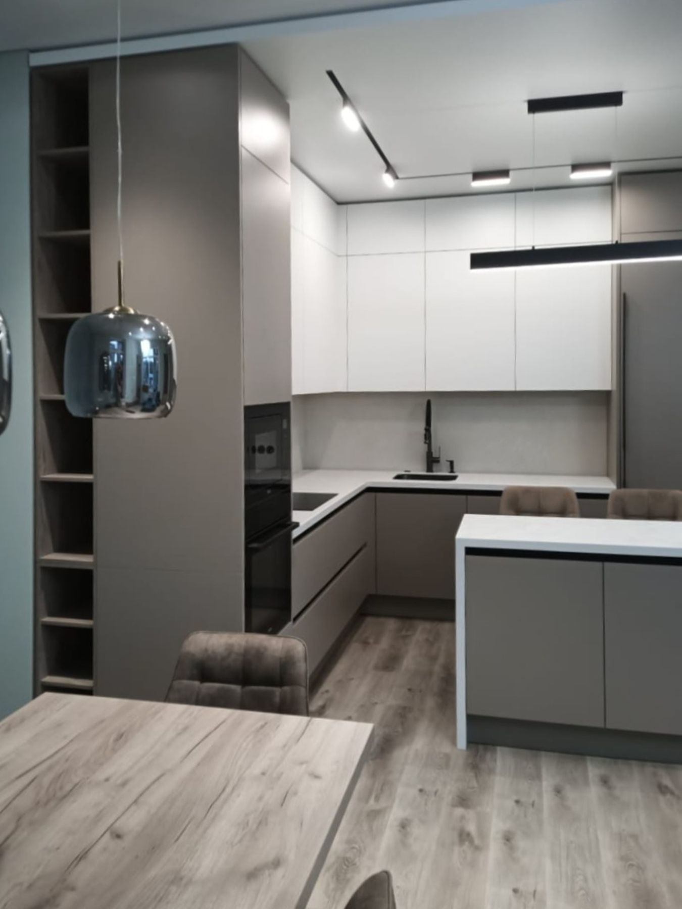 О проектеОписаниеОт клиента поступил запрос на полную меблировку кухни-гостиной. В помещении расположены кухня с островом, витрина-буфет, столовая группа, диван с креслом и ТВ-зона. Всё это спроектировали и установили с учетом пожеланий заказчика.