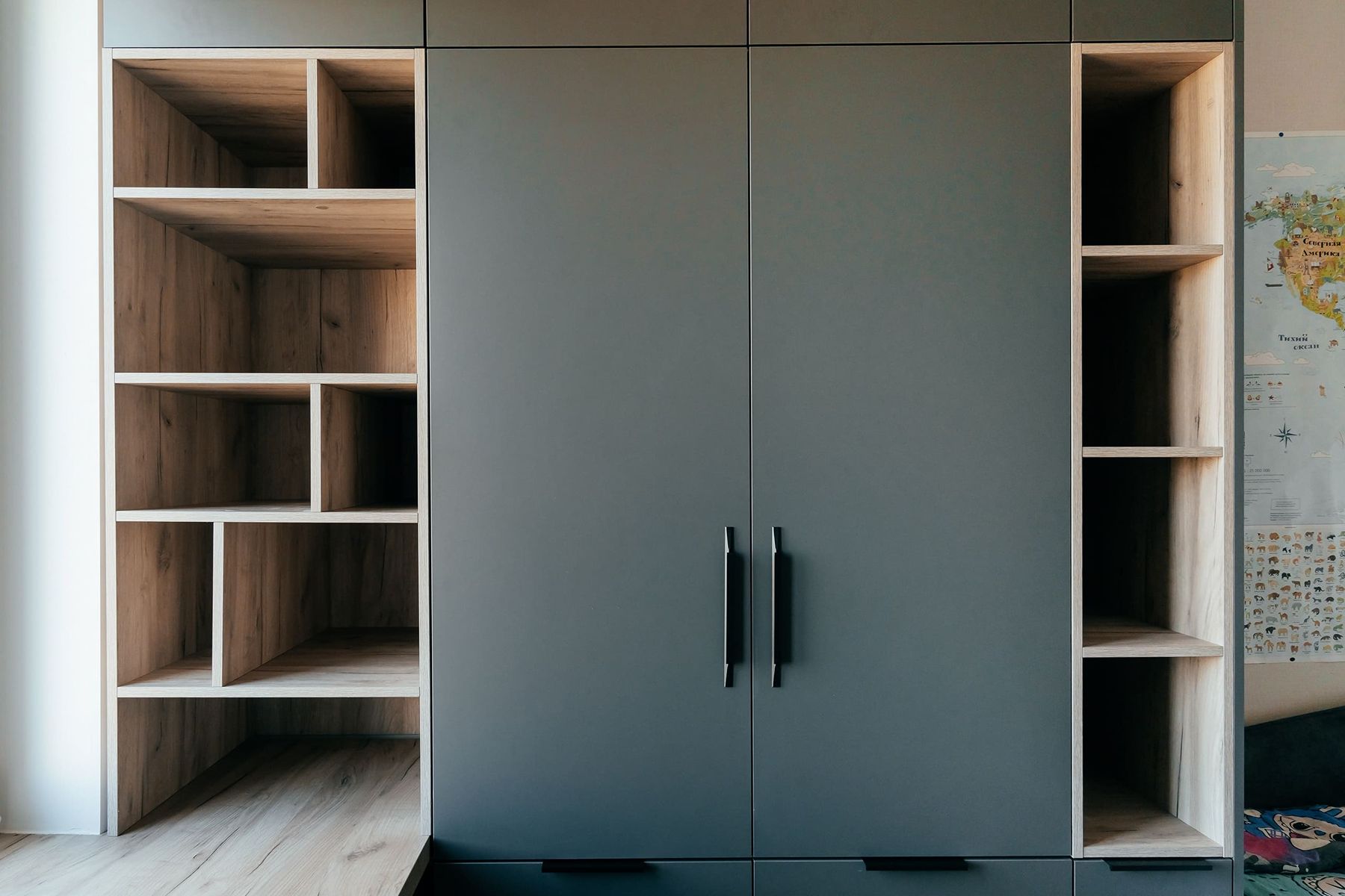 О проектеОписаниеЗдесь представлена детская для мальчика. Чтобы разбавить темные фасады, мы спроектировали открытые полки для хранения книг и игрушек. Внизу имеются выдвижные системы для хранения одежды.