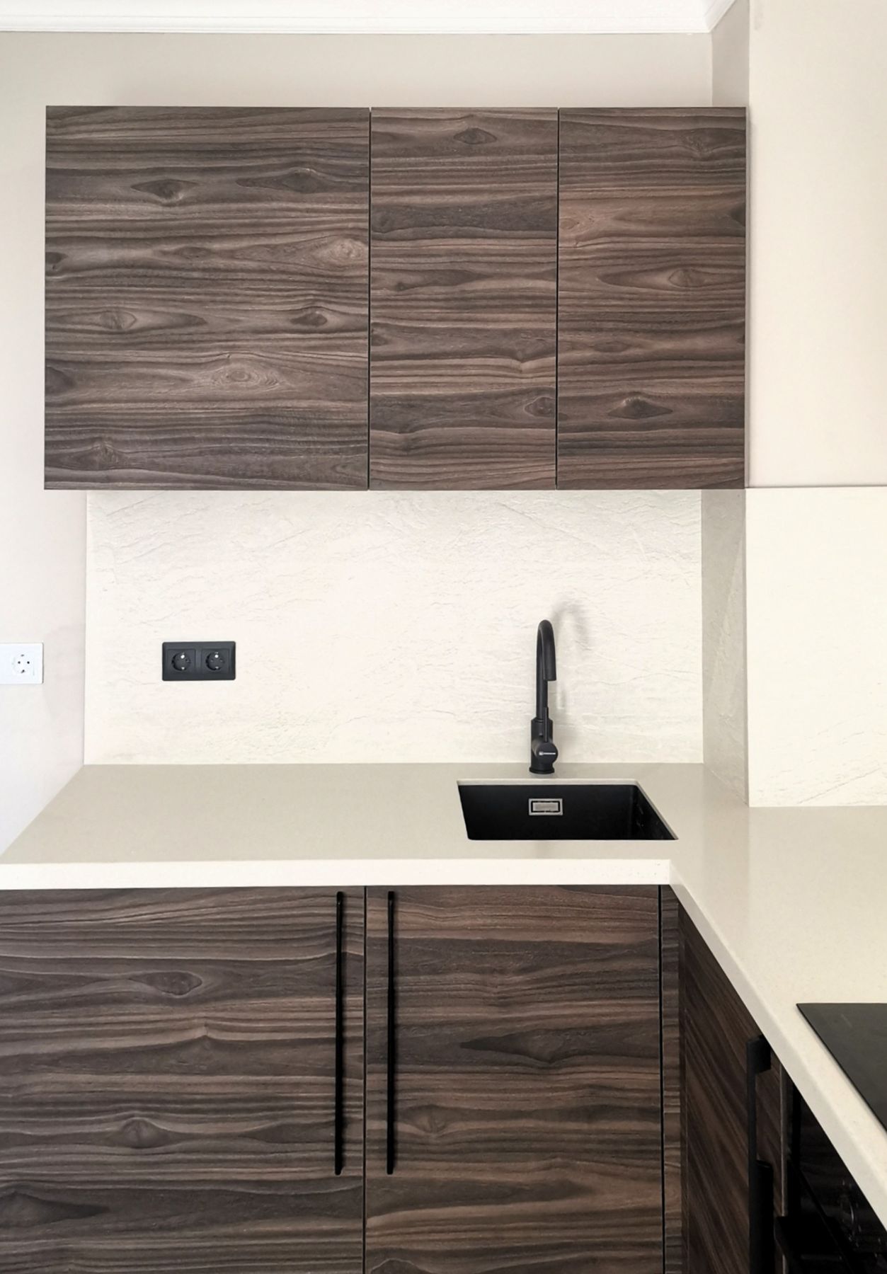 О проектеОписаниеЭтот проект представляет собой компактную, но функциональную угловую кухню, идеально подходящую для малогабаритных квартир или студий. Дизайн выдержан в духе современного минимализма. Гарнитур отличают чистые линии, отсутствие лишних деталей, акцент на материалах и цветовых контрастах.