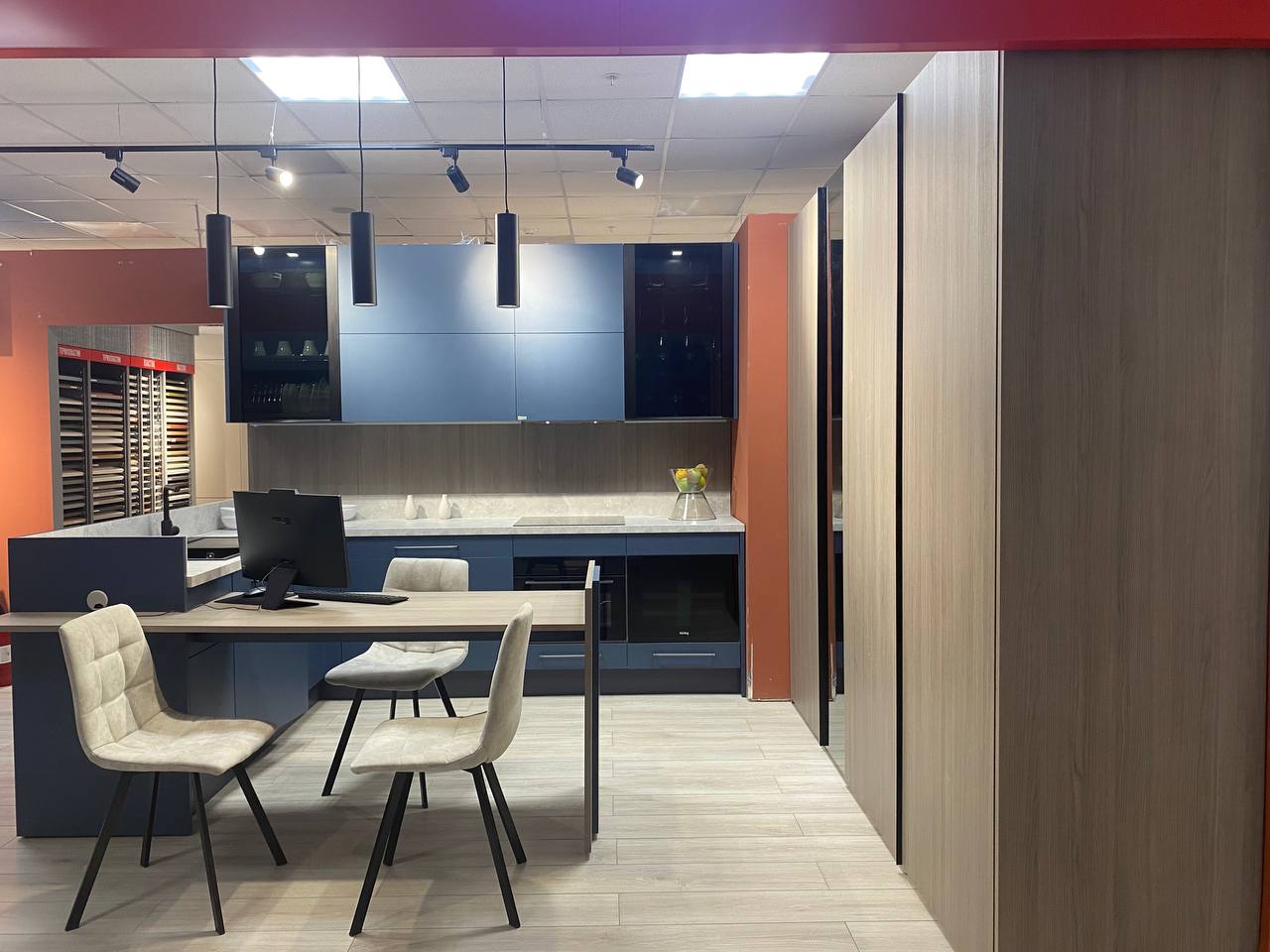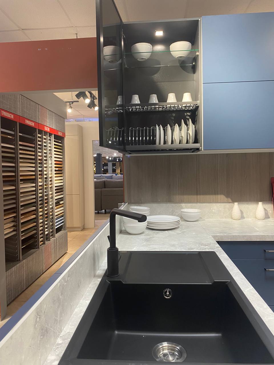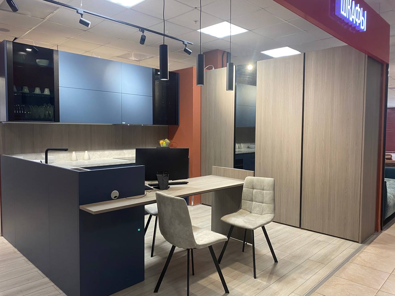 О проектеОписаниеПроект кухни-гостиной модели Mix22 цвета "Синий Балтийский" и шкафов в цвете "Серый дуб" словно переносит вас на морской берег, даря ощущение покоя, гармонии и уюта.