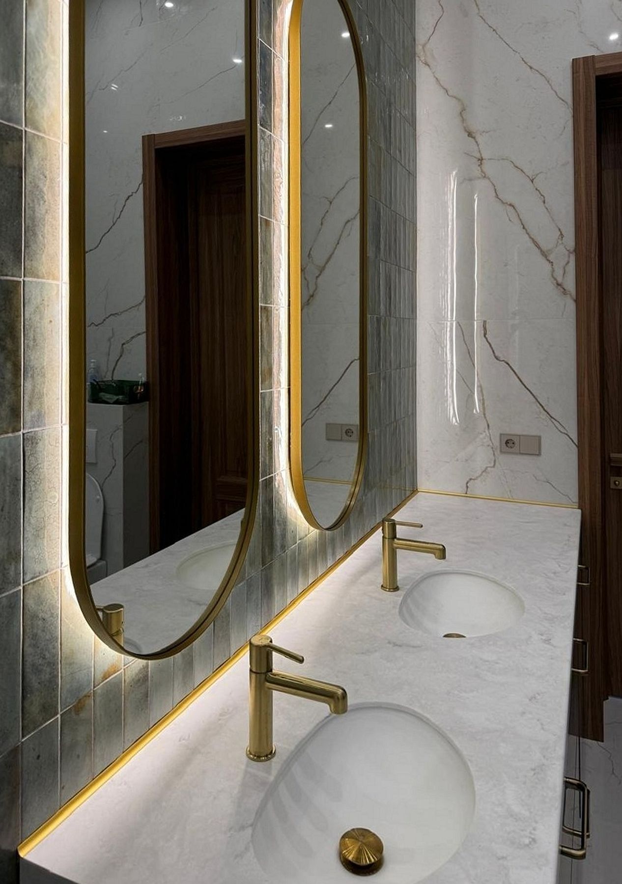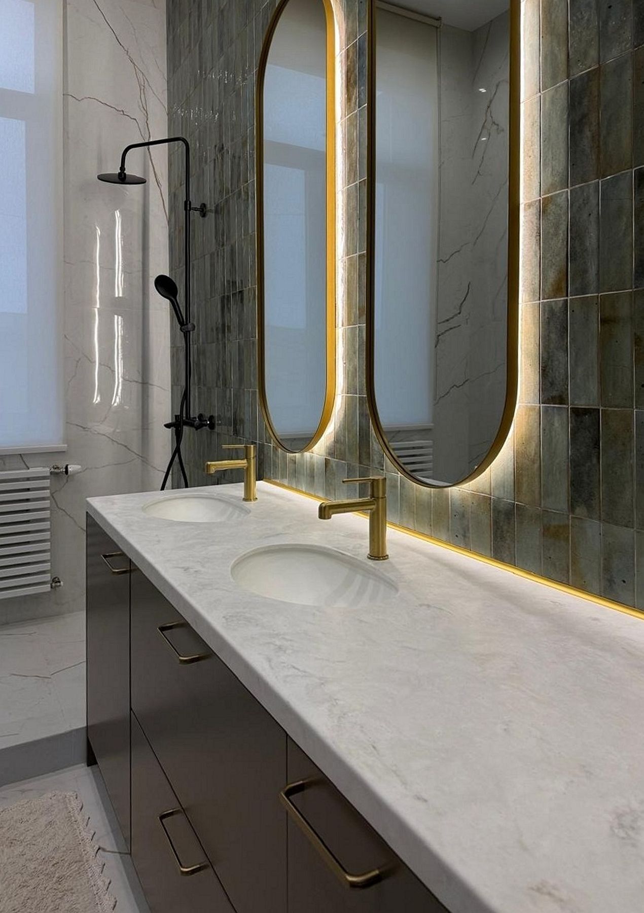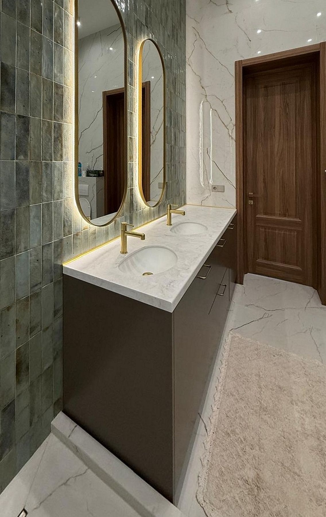 О проектеОписаниеЭта ванная комната – пример стильного и современного интерьера, идеально подходящего для загородного дома. Она сочетает в себе эстетику комфорта, практичность и изысканный дизайн, создает атмосферу уюта и расслабления.