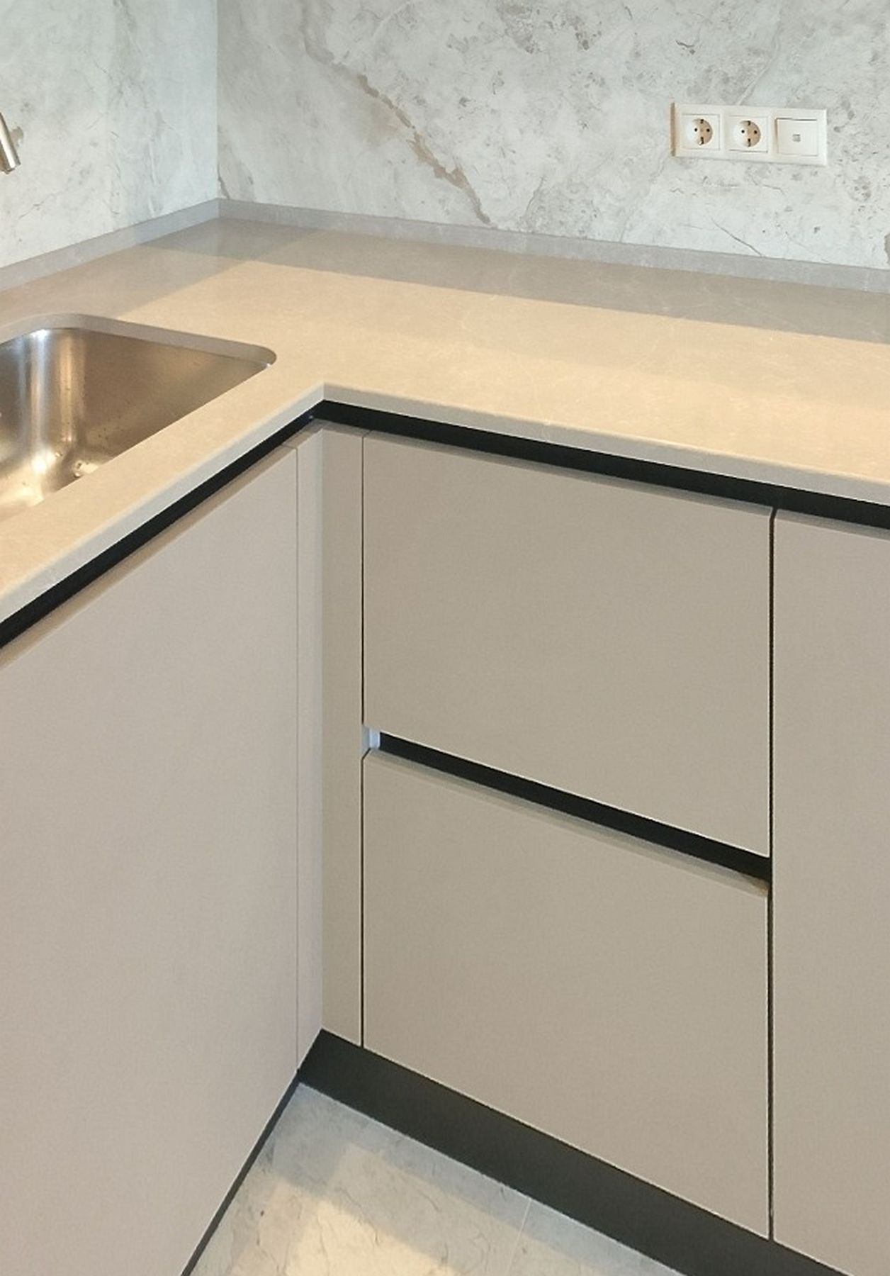 О проектеОписаниеВ студию обратился отец, чтобы заказать кухню для сына. Сыну понравились фасады модели Spark из-за их текстуры и ударопрочности. Столешницу выполнили из кварца, чтобы кухня была максимально долговечной.