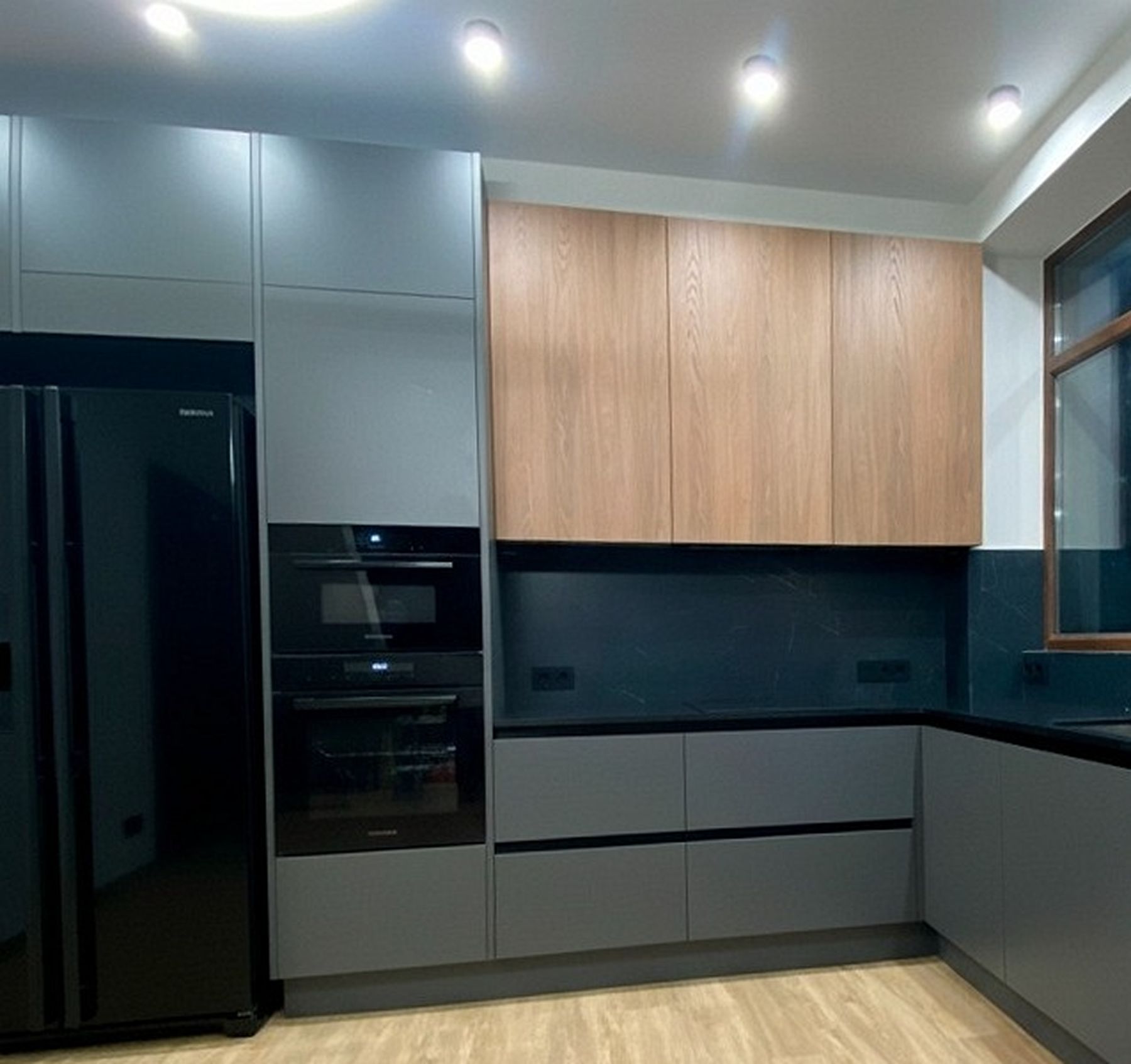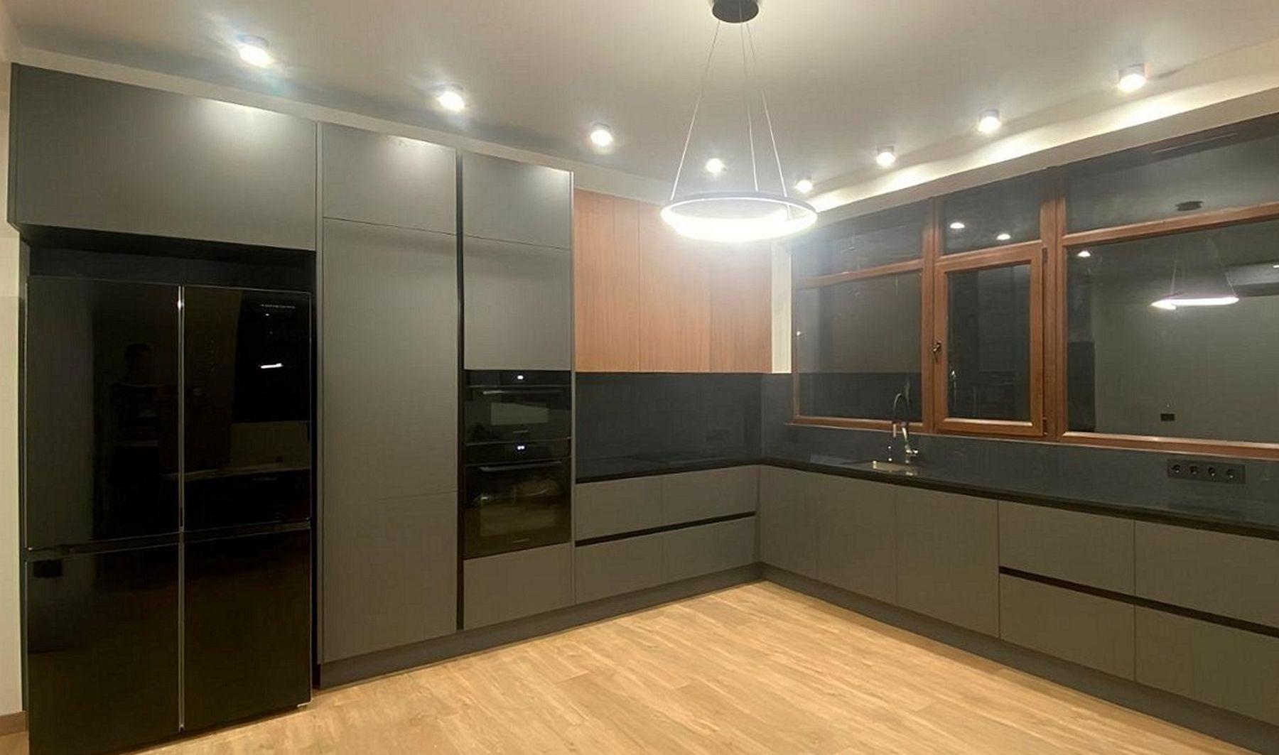 О проектеОписаниеЭтот проект демонстрирует, как создать эргономичное пространство в просторном помещении. Задача состояла в разработке угловой кухни, где будет удобно работать нескольким людям одновременно, а вся техника будет гармонично интегрирована в интерьер. Нашим решением стал кухонный гарнитур с четким функциональным зонированием и продуманной системой хранения.