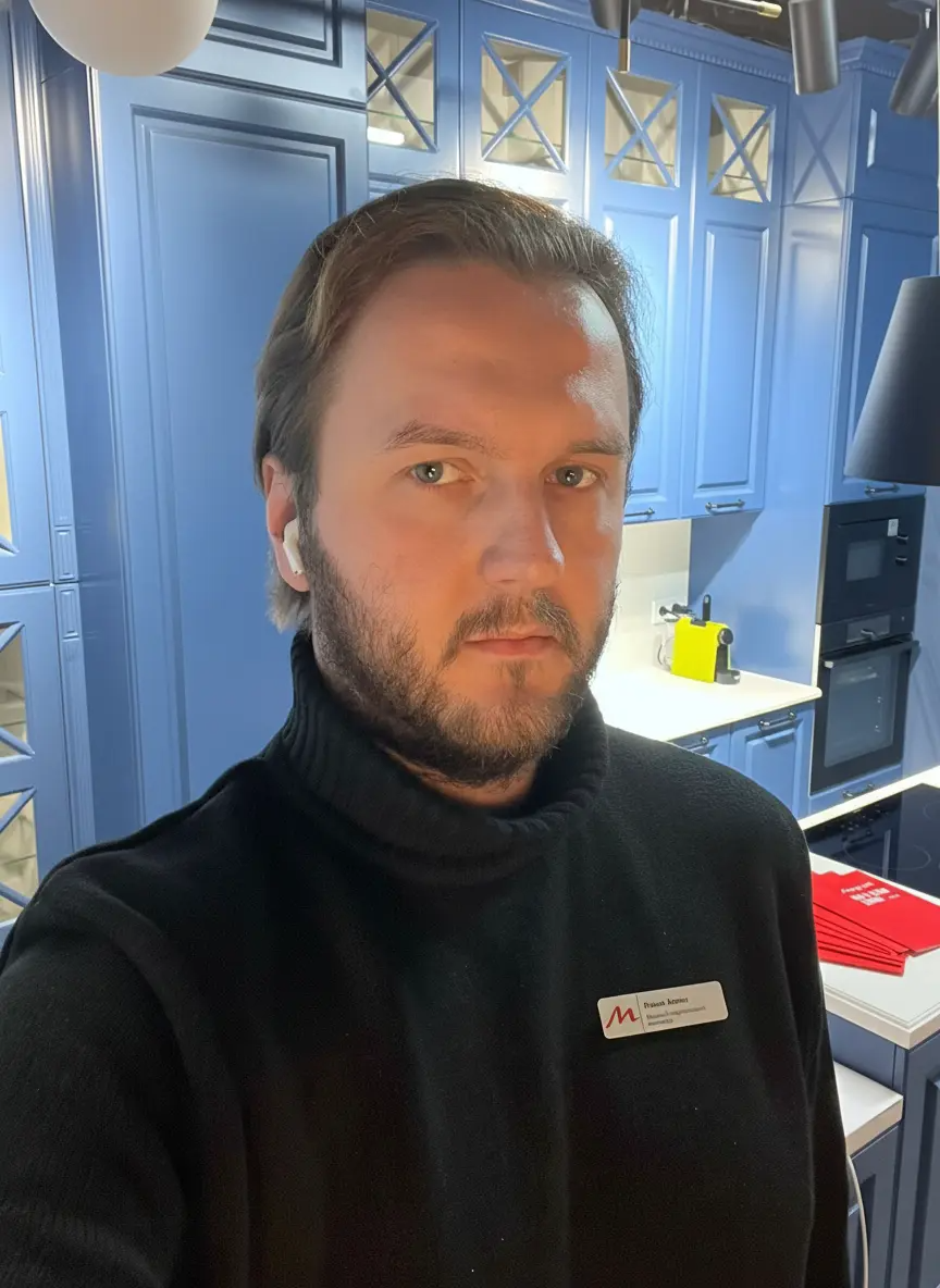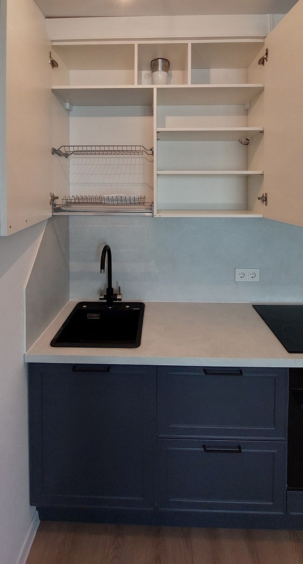 О проектеОписаниеМолодая пара столкнулась с классической проблемой после покупки квартиры с готовым ремонтом: как выбрать кухню, которая будет стильной, функциональной и идеально впишется в помещение. Вдохновением послужил дизайнерский проект из нашего журнала – клиенты влюбились в элегантный синий цвет, в котором была выполнена кухня Ксении Собчак.
