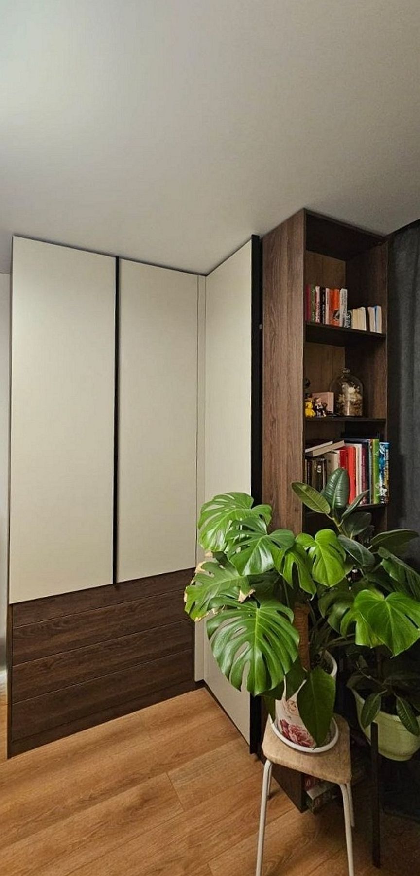 О проектеОписаниеЭтот проект решил задачу по организации стильного и вместительного хранения в помещении, где важно сохранить ощущение простора и свежести. Решением стал элегантный угловой шкаф, который стал изюминкой интерьера.