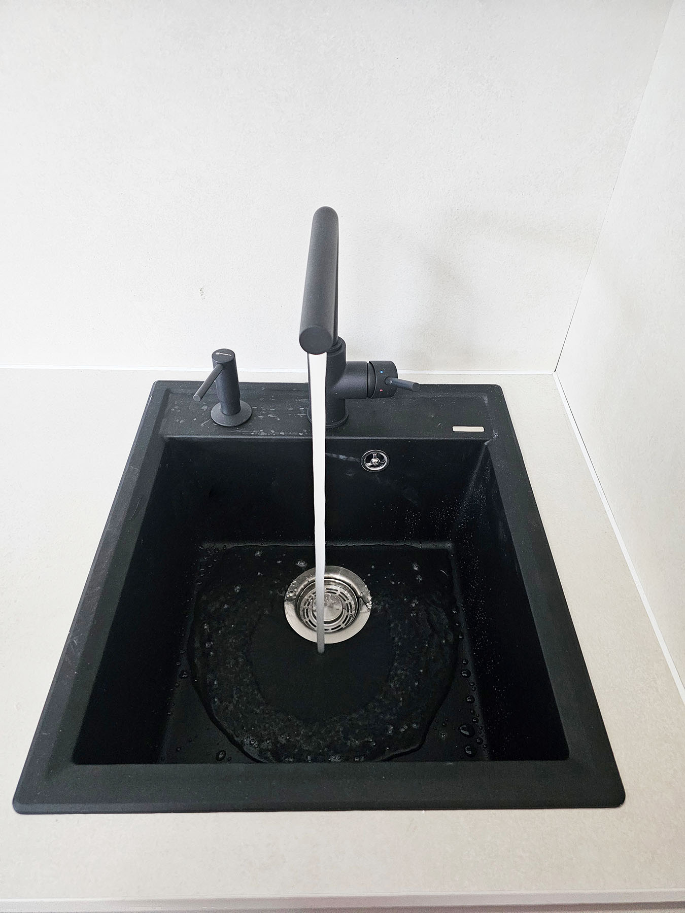 В этом дизайне особое внимание уделено профилю, а также встроенной технике и сантехнике, что придает пространству изюминку и стиль. Использование черных элементов создает эффектный контраст с остальными поверхностями, делая интерьер более ярким. Такой подход способствует визуальному расширению пространства и сдержанности в деталях.