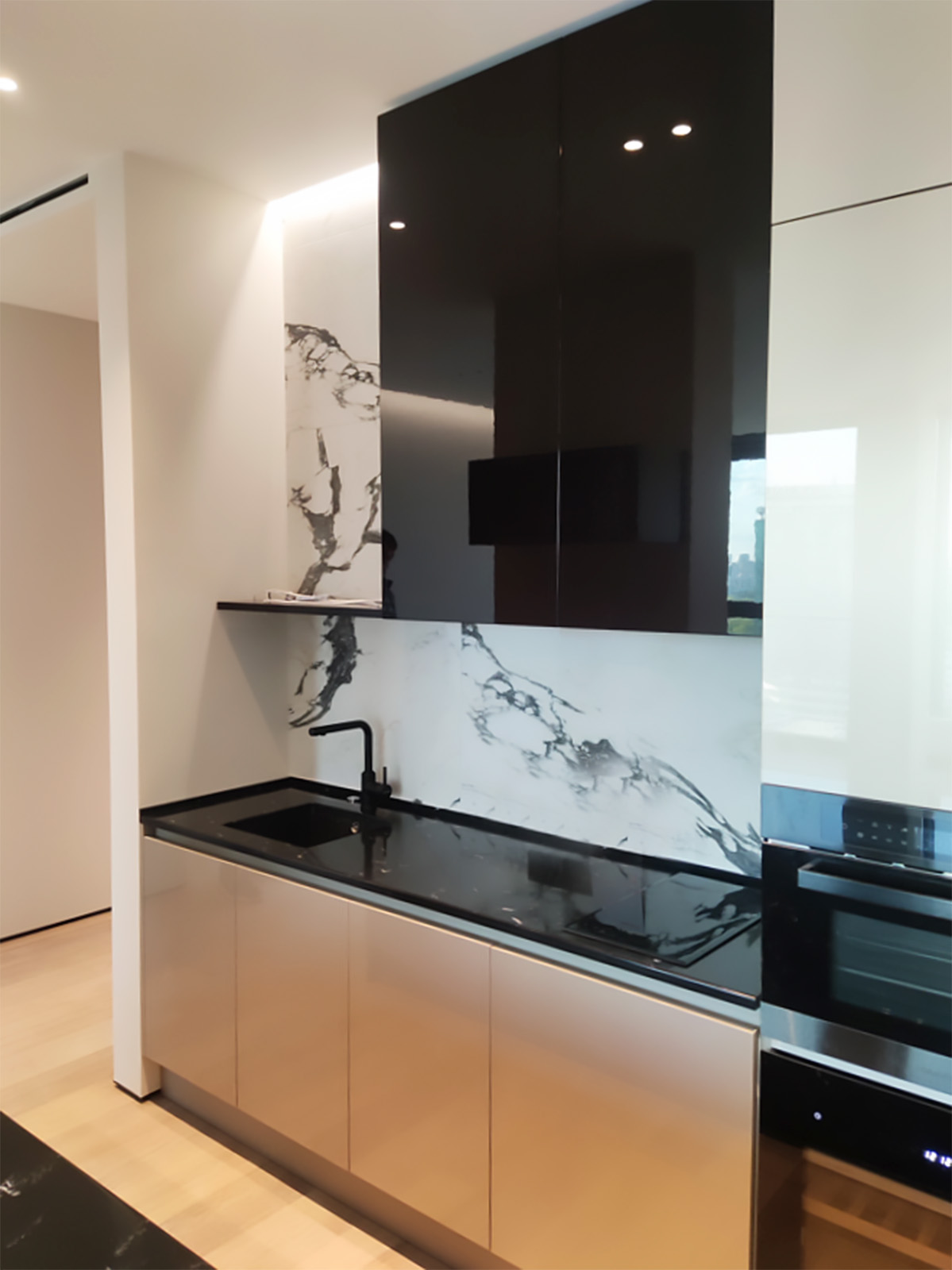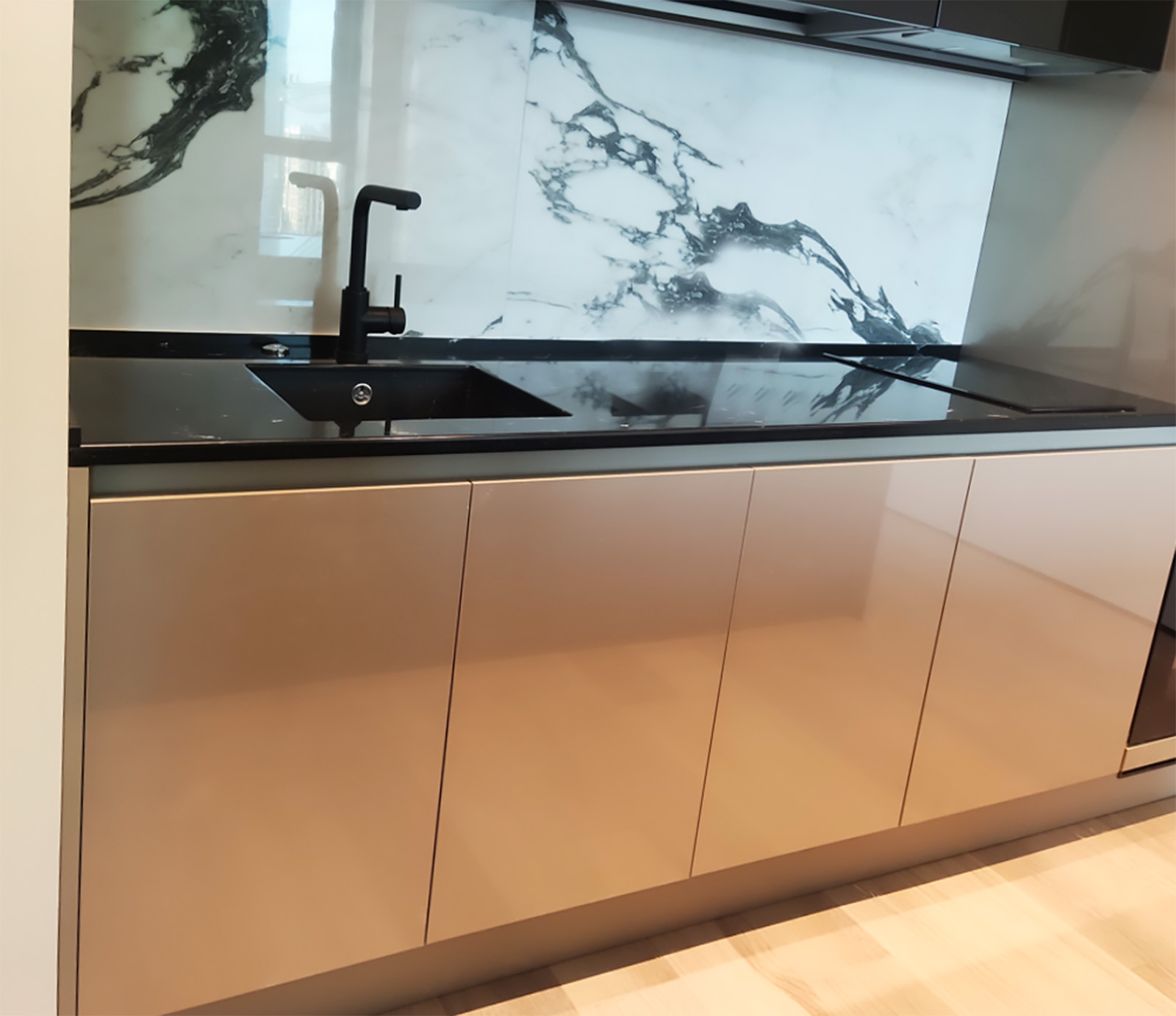 О проектеОписаниеГлянцевые поверхности - смелое решение! Но только лишь потому, что от такой кухни не сможет оторвать взгляд ни один гость!