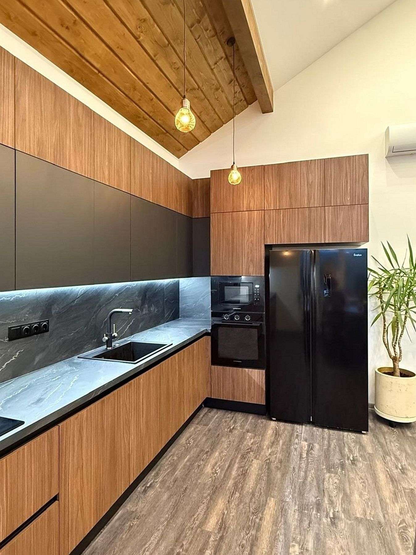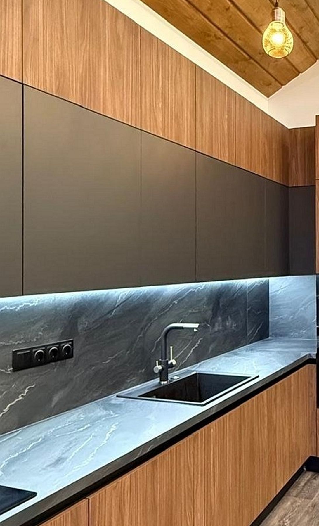 О проектеОписаниеЭтот проект создавался для семьи, которая ценит брутальный стиль. Но при этом нужно было, чтобы кухня в их загородном доме была не просто эффектной, а по-настоящему теплой и уютной. Нашей задачей было найти баланс между выразительностью и комфортом.